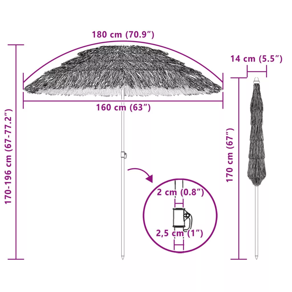 Ez a Modern Beach napernyő a szabadban járóknak alapvető kiegészítő, akik a stílust és a funkciót egyaránt keresik. Használható kertben vagy strandon, a napernyő kombinálja a természetes hangulatot a praktikus előnyökkel. Egyedi formája különféle ülőhelyekhez ad árnyékot, kellemes pihenést biztosítva napos időben. Trópusi stílusa gazdag, egzotikus kinézete még élénkebbé teszi a nyári helyszínt.