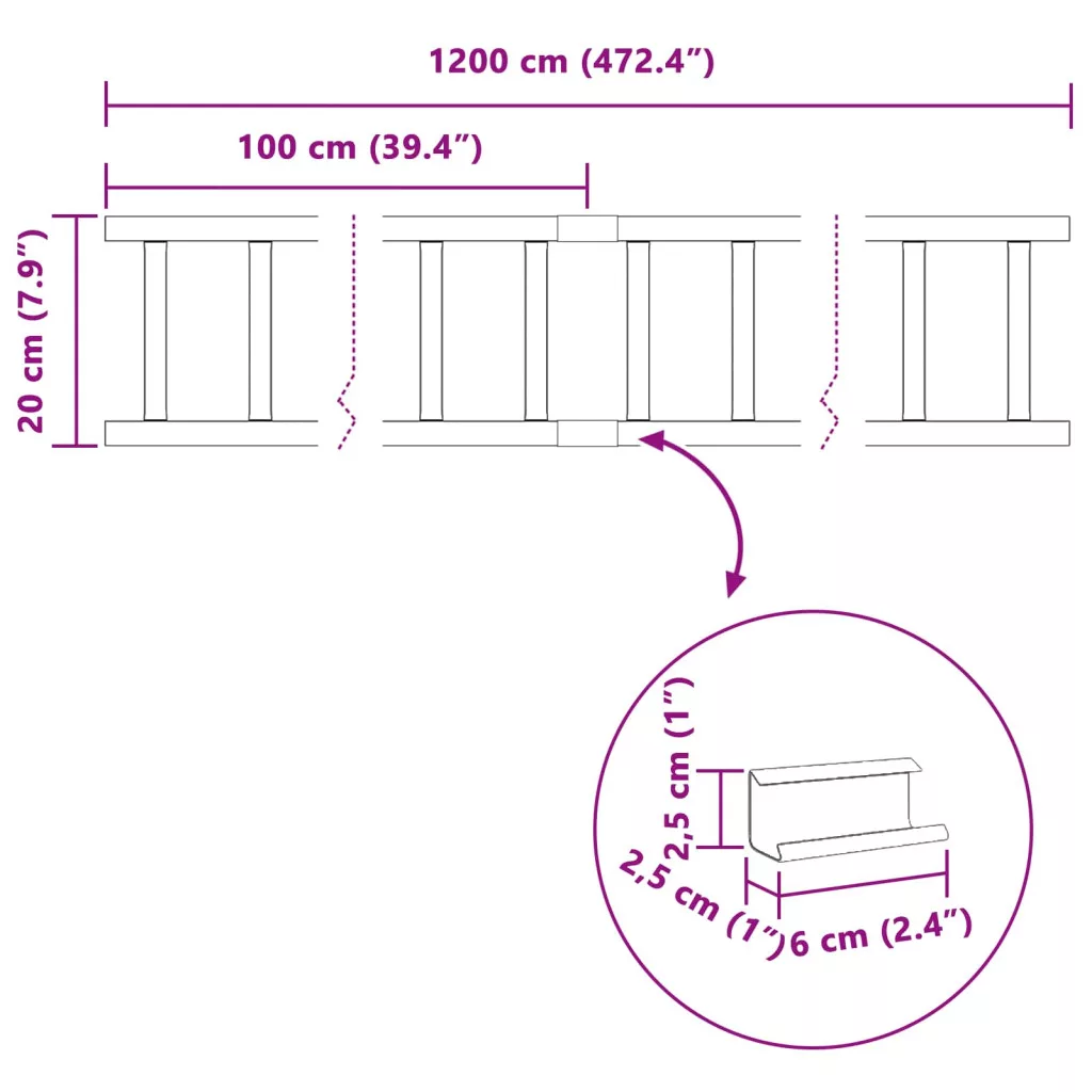 - Általános dimenziók: 1200 x 2,5 x 20 cm (Ho x Szé x Ma)