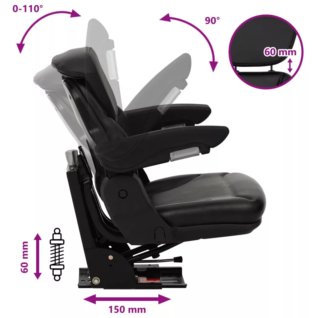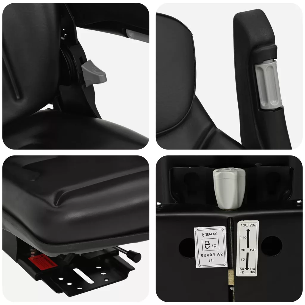 Ez a rugós ülés különböző gépekkel, mint például traktorokkal és targonca-vezérlőkkel kompatibilis. E-mark tanúsítványos biztonsági funkciókkal és több pozicionálási lehetőséggel rendelkezik, így könnyen használható 50-130 kg közötti súlyú vezetők számára.