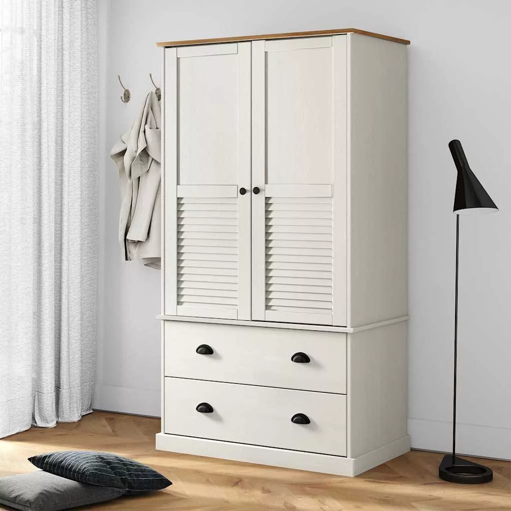 Ez a klasszikus stílusú faszekrény bőséges tárolóhelyet biztosít ruhái, cipői és kiegészítői rendezett tárolásához.