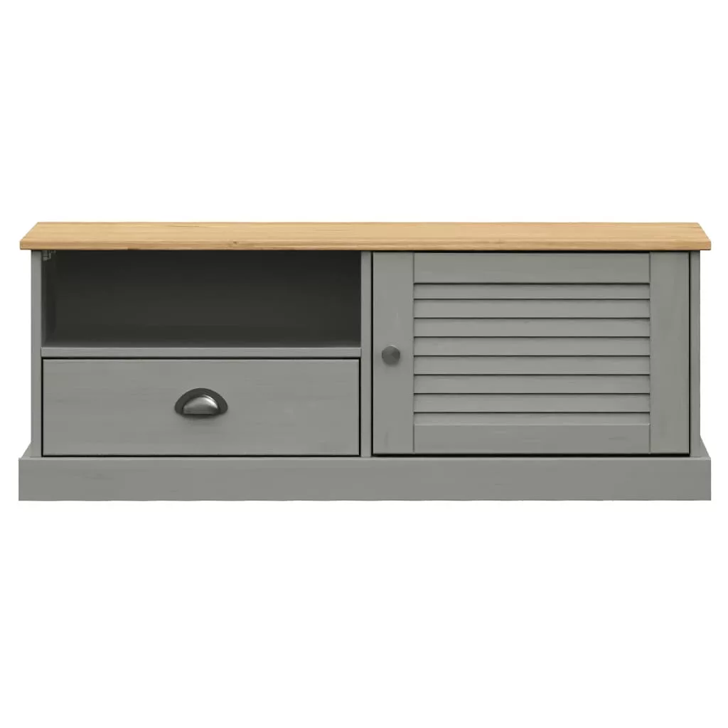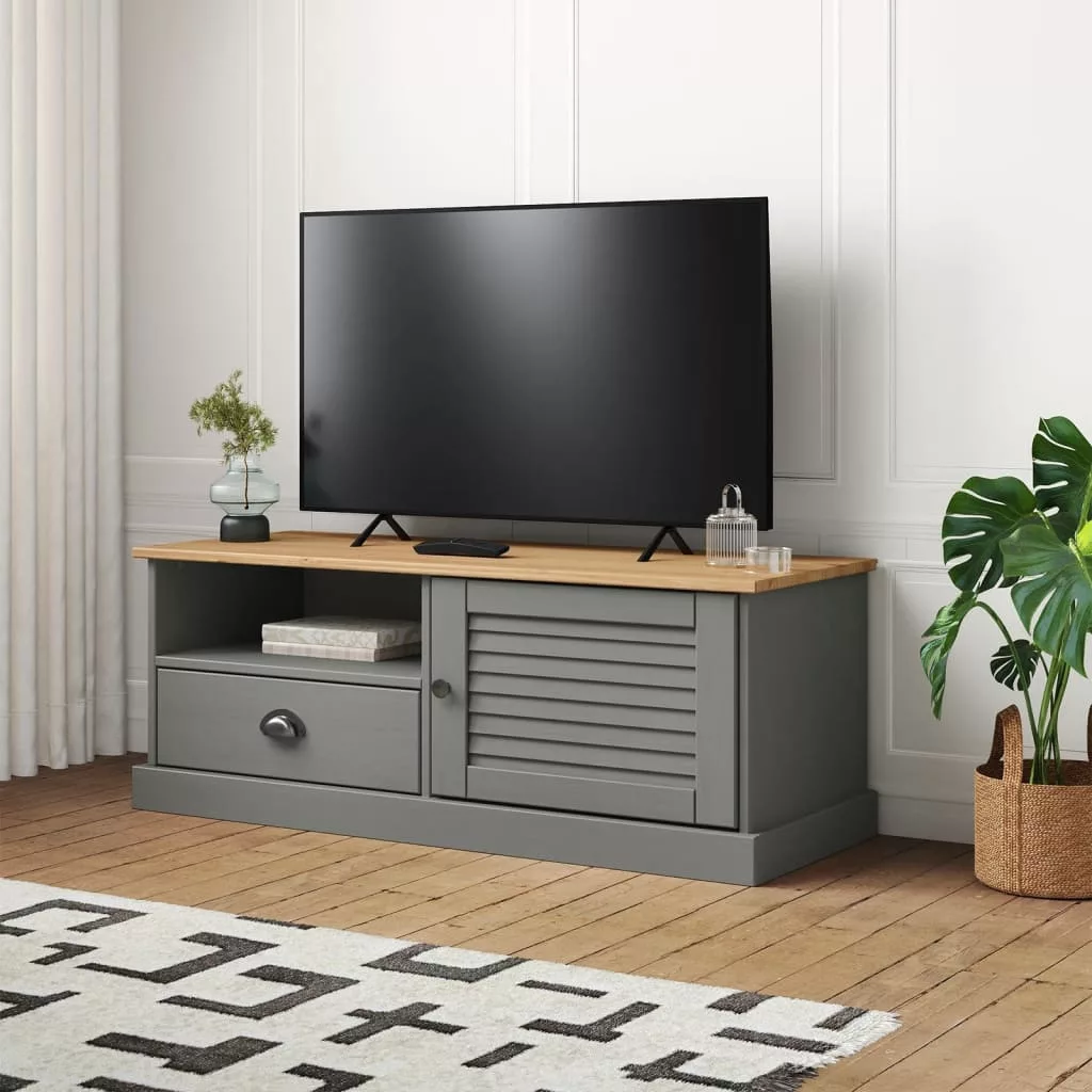 - Tömör fenyőfa: A tömör fenyőfa egy gyönyörű természetes anyag. A fenyőfa egyenes erezetű, a csomók pedig jellegzetes, rusztikus megjelenést biztosítanak az anyagnak. Ez a tömör fenyőfából készült TV-állvány tartós és masszív.