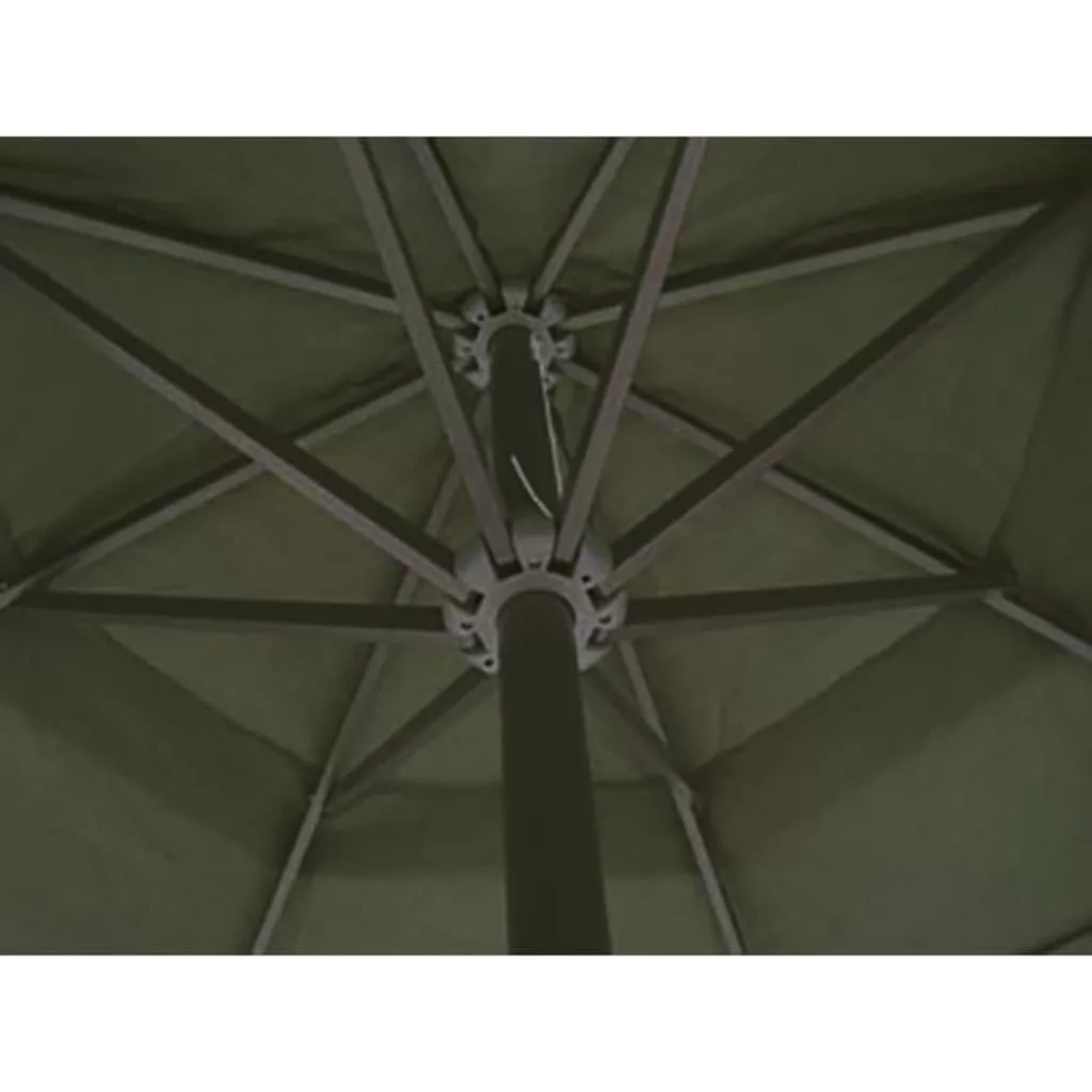 Ez a kiváló minőségű napernyő könnyen nyitható és csukható a rúdon lévő gomb elforgatásával. Az alumínium rúd, a 8 erős alumínium bordával tartóssá teszi a napernyőt. Sőt, a nagy, levehető acél kereszt bázis stabilitásnövelő, anélkül, hogy túl sok helyet foglalna.
