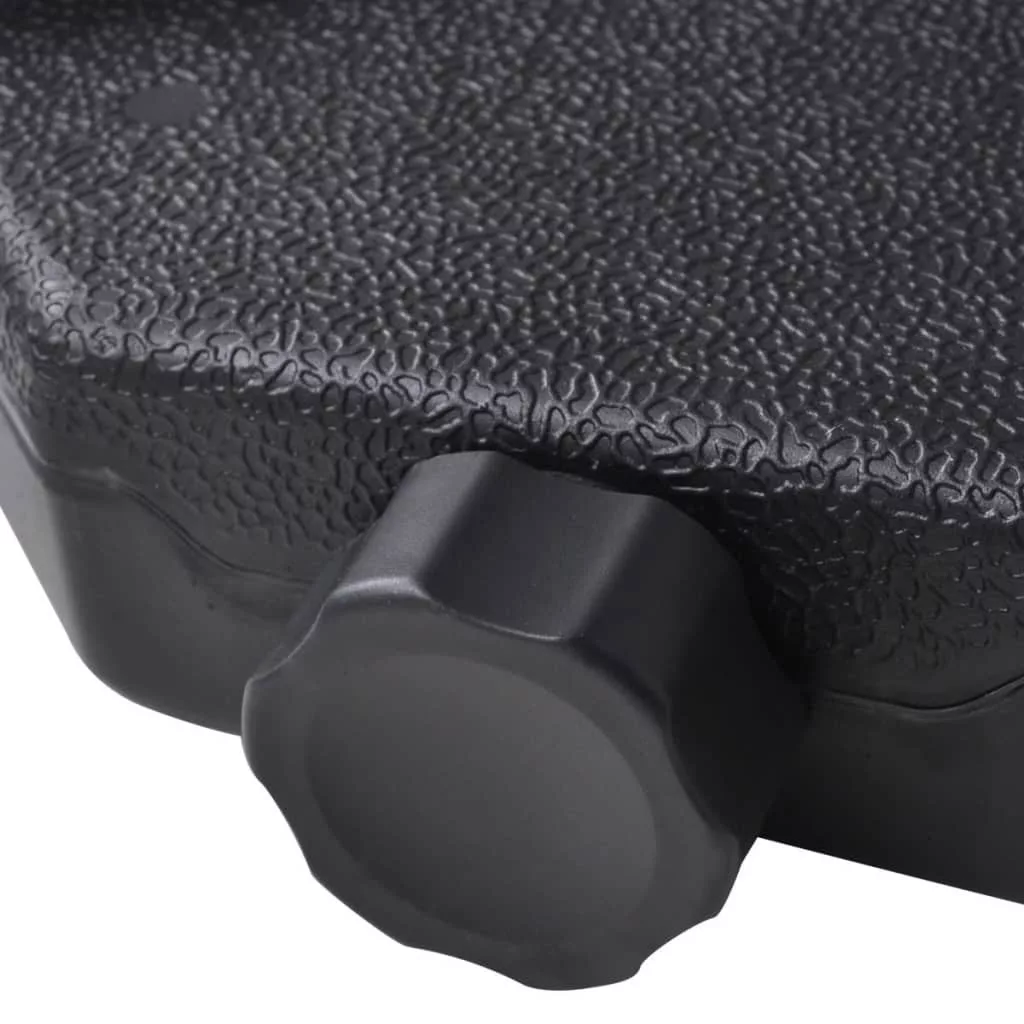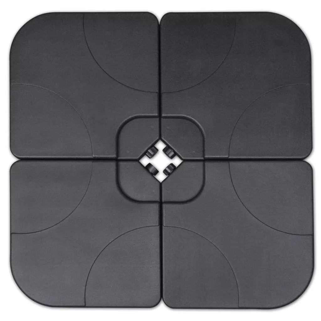 Az extra napernyő bázis négy különálló részből áll, amiket meg lehet tölteni 60 liter vízzel vagy 80 kg homokkal. Ez ideális, mert erősíti a napernyő kereszt bázisát. A töltőanyag kiöntésével a napernyő bázisa könnyű lesz így könnyen hordozható.