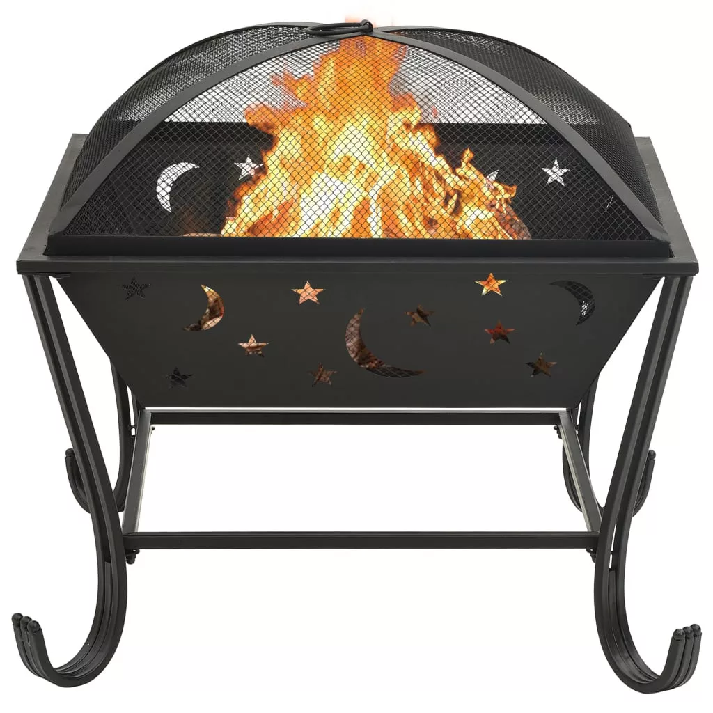 Az acélból készült tűzrakó kiválóan nyeli el és sugározza a hőt. A nagy és mély tálnak köszönhetően nagy tűz rakható a tűztálban, amelyet órákig élvezhet családjával. A háló lehetővé teszi az égő tűz megfigyelését, elzárja a tüzet a biztonság érdekében, és megakadályozza a szikrák és a törmelék kirepülését. Emellett a hálós fedélen egy kényelmes gyűrű található, így könnyen hordozható. A mellékelt fém piszkavassal a hálós fedelet leveheti, és a rönköket átrendezheti.
