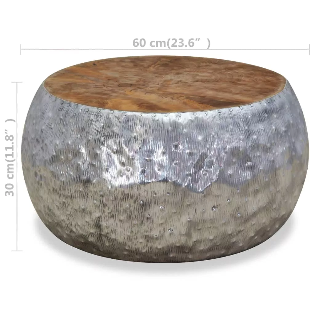 Az bútor felülete valódi tíkfából készült és ideális távirányítók, könyvek, újságok és egyéb tárgyak elhelyezésére, amelyeket kéz közelben kíván tudni. A masszív alumíniumfelépítésnek köszönhetően ez a dohányzóasztal tartós és egy nedves ronggyal könnyen tisztítható. Pohárszékként, tálalóként, éjjeli szekrényként, állványként és egyéb módokon is használható. A terméket összeszerelt állapotban szállítjuk, további szerelésre nem lesz szükség.