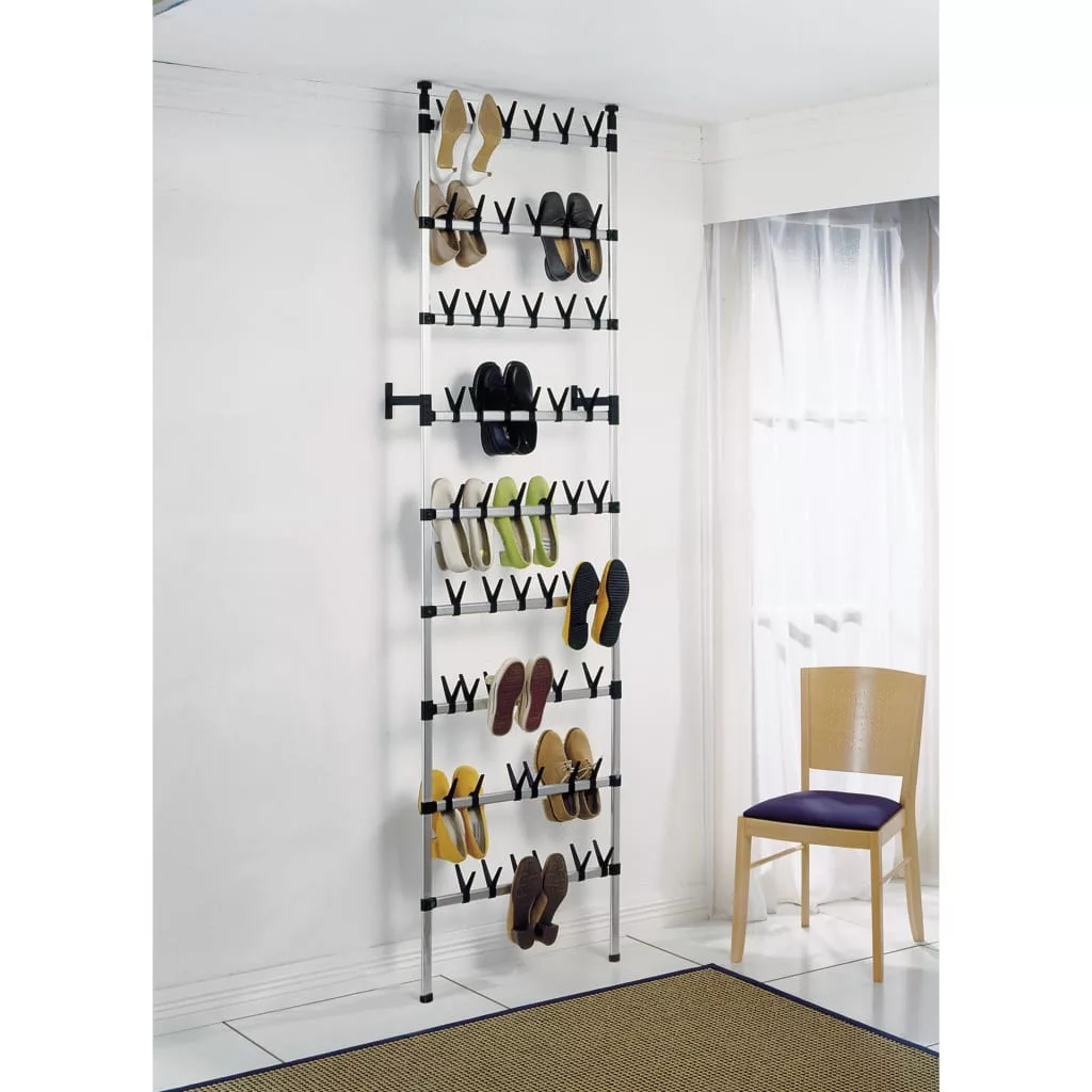A teleszkópos cipőtartó alumíniumból készült, így masszív és erős. A tárolóegység a teleszkópos rendszernek és az állítható magasságnak köszönhetően különböző térbeli elrendezésekhez alkalmazható. Egyedülálló és sokoldalú eszköz cipői rendezésére és a helytakarékosságra.