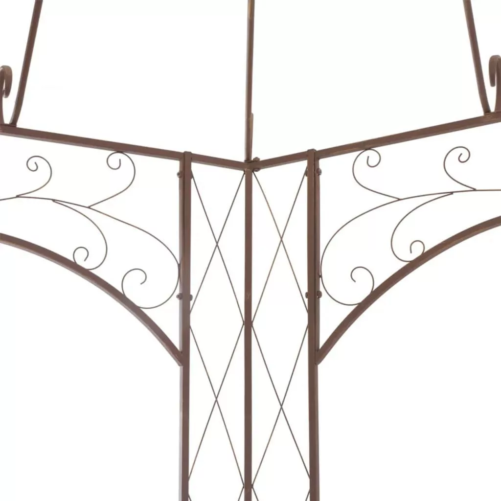 Kovácsoltvasból készült, így ez a pavilon kiemelkedően stabil alapot szolgáltat a rózsáknak és egyéb futónövényeknek. A vintage felületkezelésű díszítések egy csipet romantikával ruházzák fel a pavilont, valamint eleganciát sugároznak verandájába vagy hátsó kertjébe. Ezenkívül az esztétikus, ívelt kivitelezésnek köszönhetően ez a rózsalugas árnyékot nyújt a nyári időszakban. A kerti pavilon kedves helye lesz majd az olyan kúszóindáknak mint például a borostyán, az iszalag, a lilaakác, a szőlő, egyéb virágok... stb.