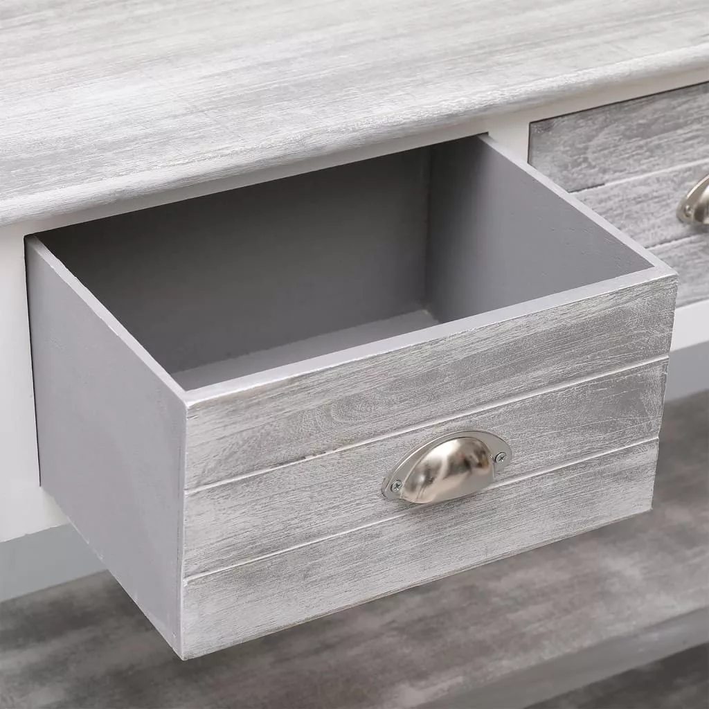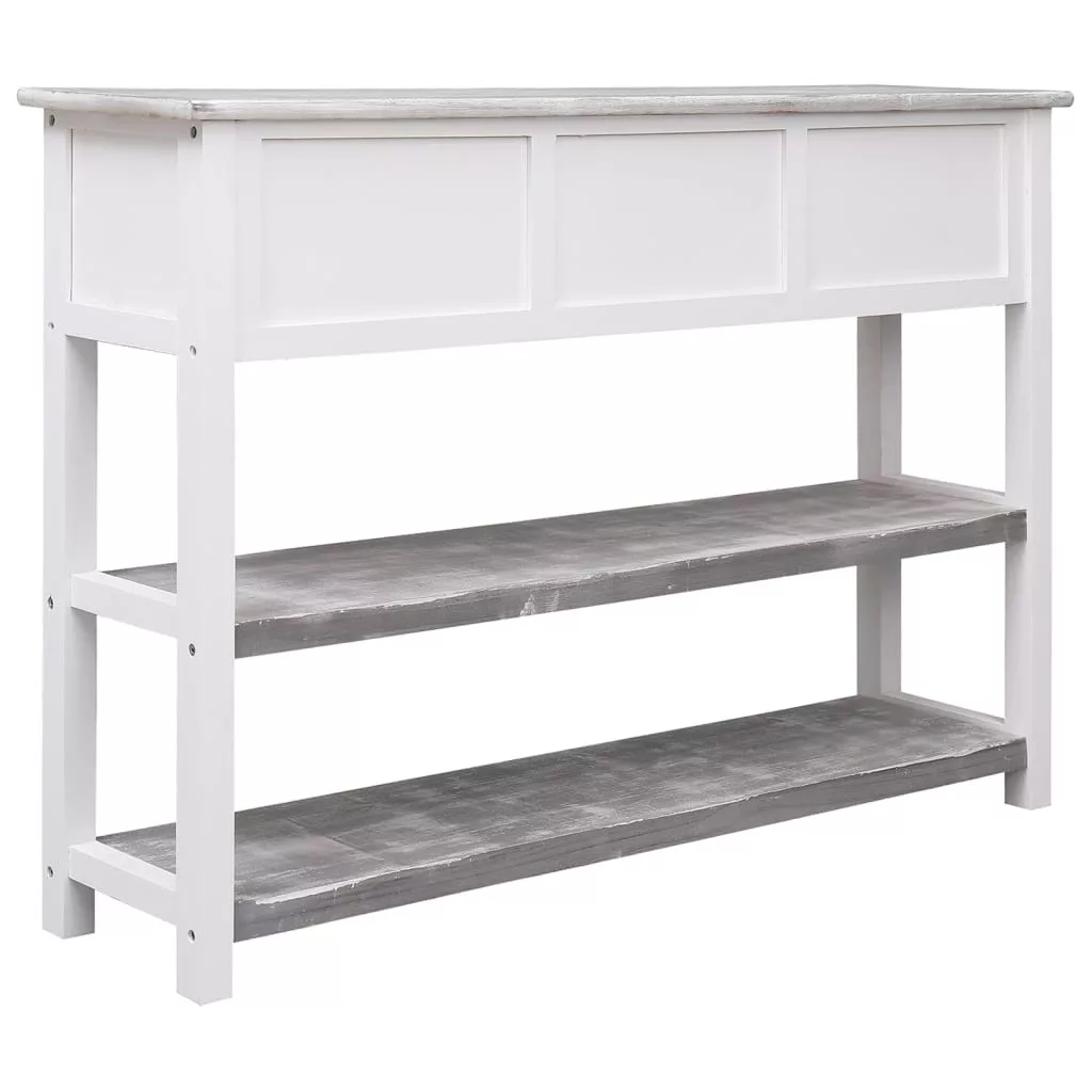 A tálalószekrény prémium minőségű nyárfából és császárfából készült, és rendkívül stabil és tartós. Masszív teteje ideális dísztárgyak, például vázák vagy cserepes növények elhelyezésére. A 3 fiók és 2 polc bőséges tárolóhelyet biztosít a különféle tárgyak rendezett tárolásához. Praktikus konzolasztalként is használható.