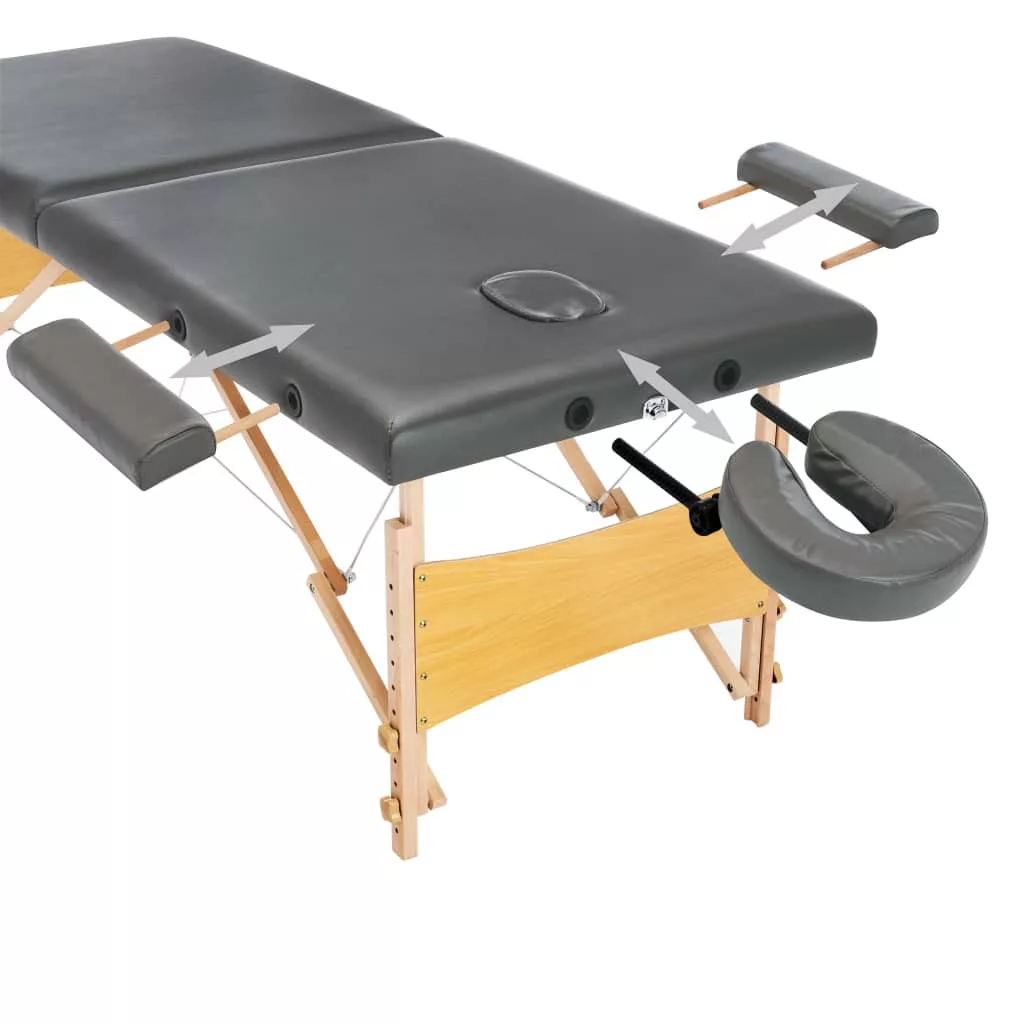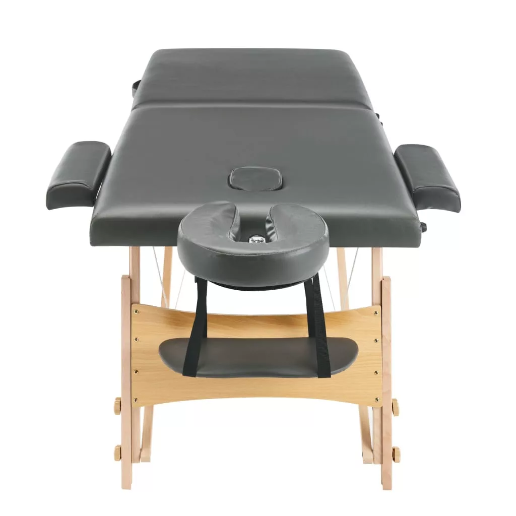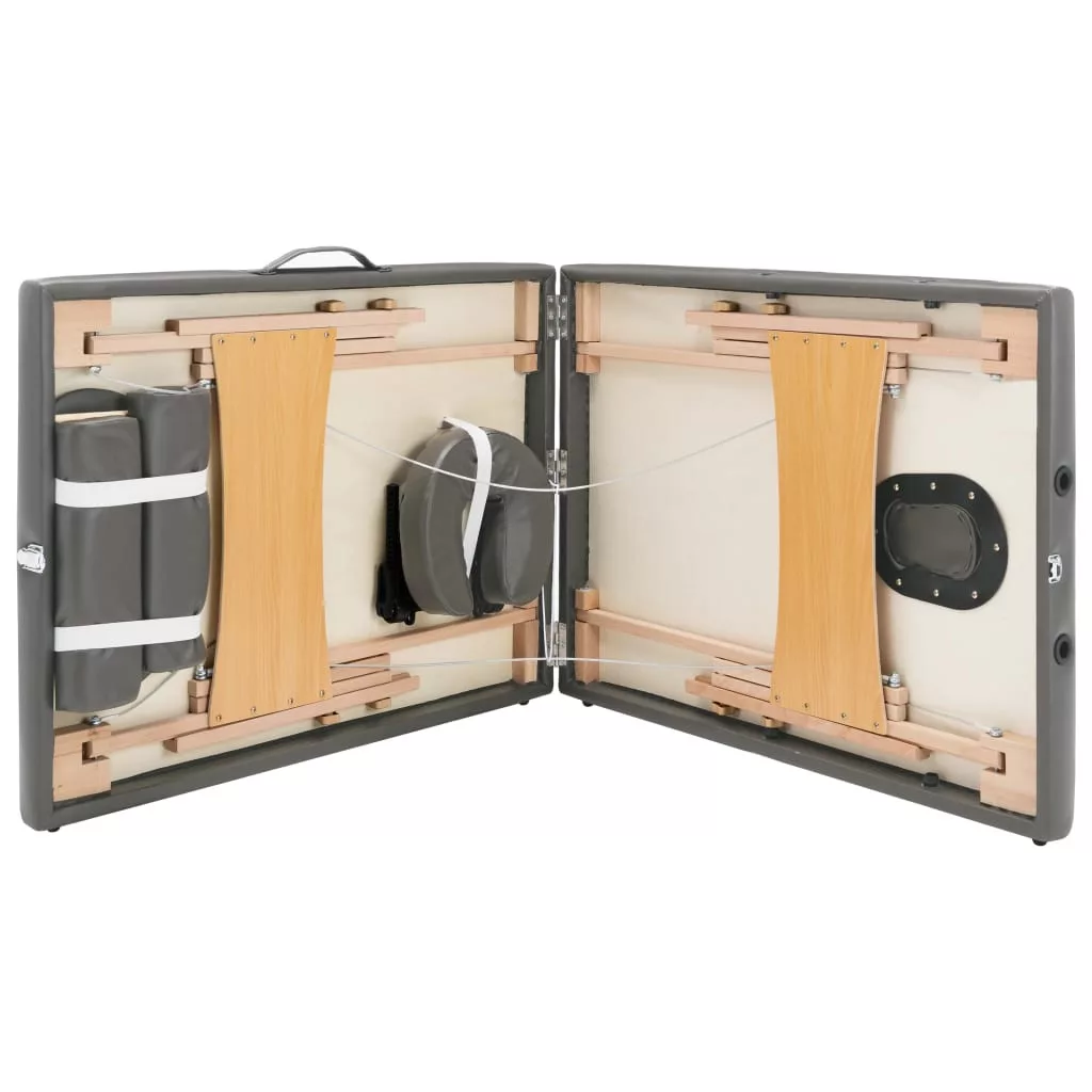 A kétzónás, összecsukható, favázas masszázsasztal professzionális és otthoni használatra is alkalmas.