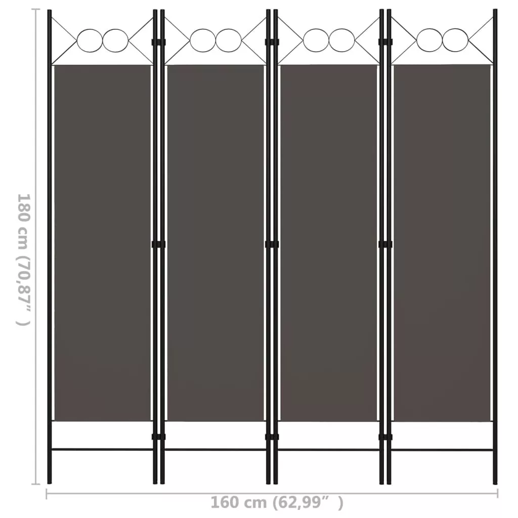 A paraván váza porszórt bevonatú acélból készült, a panelek pedig szövetből. Használaton kívül könnyen összecsukható.