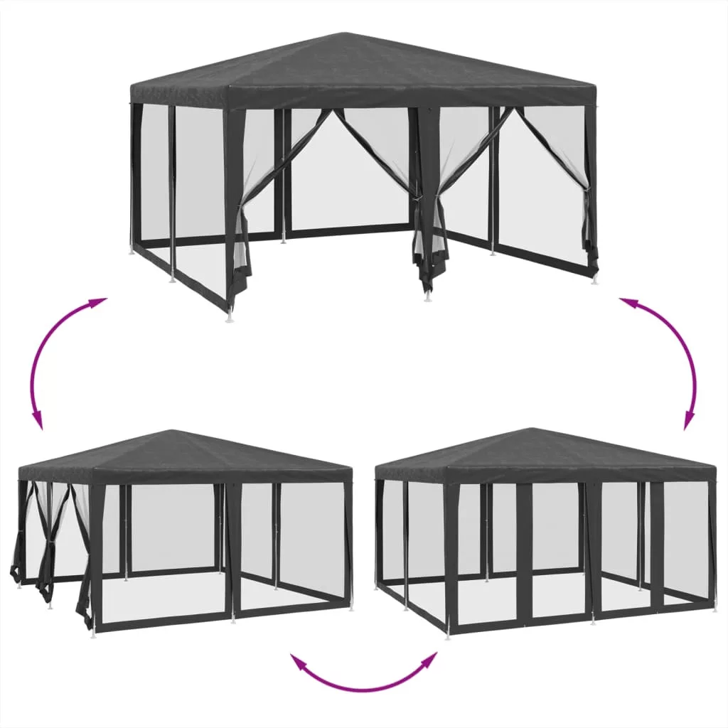 - Prémium minőségű anyag: Ez a pavilonsátor nagy sűrűségű polietilénből (HDPE) készült, amely megvéd a közvetlen napfénytől és elegendő szelet enged át. A HDPE speciálisan kezelt anyag, így vízálló is.
