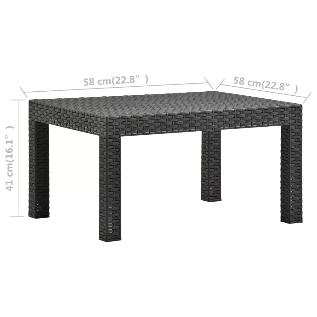 A kültéri asztal polipropilénből készült, így könnyen tisztítható és kültéri használatra alkalmas. Könnyű súlyának köszönhetően a dohányzóasztal könnyen mozgatható, és bárhová illik. Ízlésének megfelelően más kültéri bútorokkal kombinálhatja.