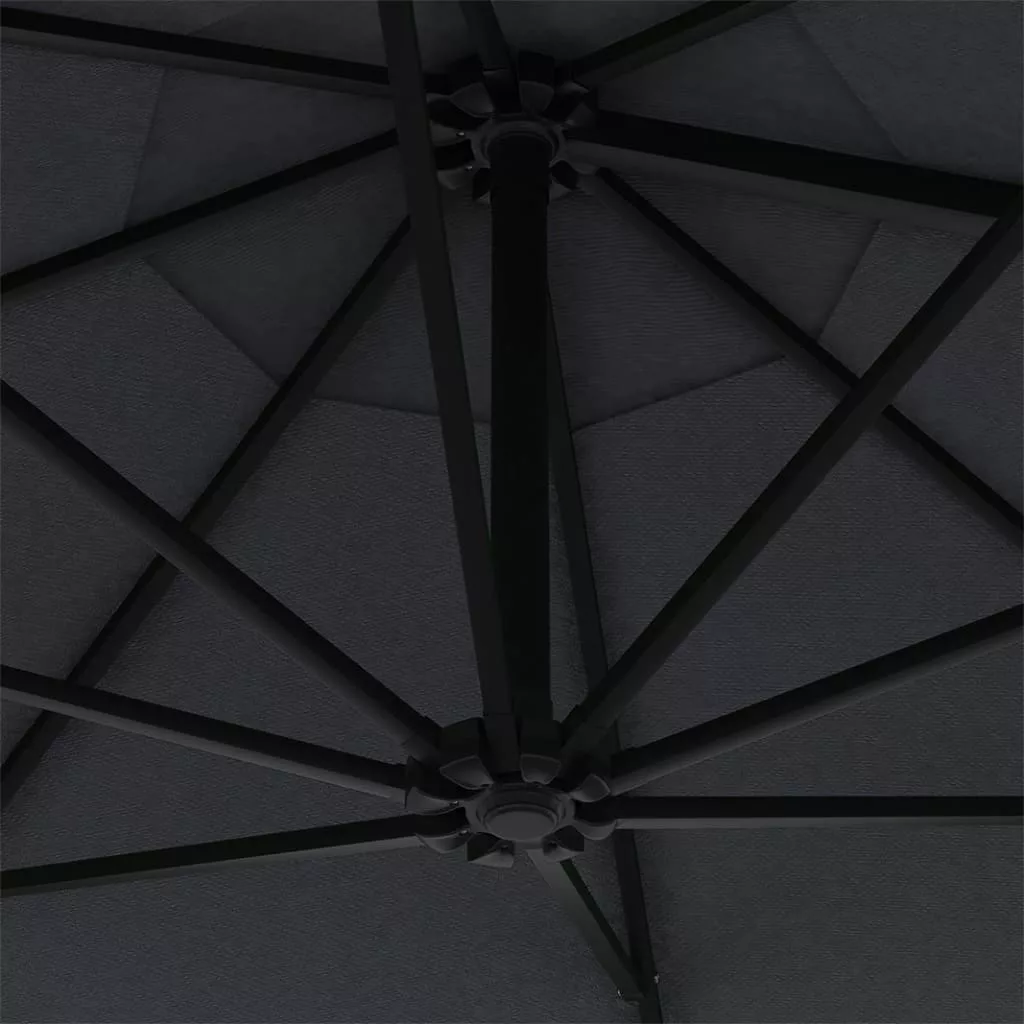 Az UV-védő és fakulásgátló poliészterből készült napernyőhuzat optimális védelmet nyújt a nap sugaraival szemben, és könnyen tisztítható. Különleges kialakításának köszönhetően a napernyő dönthető, így folyamatosan takarást biztosít a délután során a horizont felé ereszkedő nap elől. Az erős fém tartórúd és a 8 strapabíró borda rendkívüli stabilitást és szilárdságot biztosít a napernyőnek. A kerti ernyőt könnyű kinyitni és összecsukni a hajtókar mechanizmus miatt. A termék könnyen összeszerelhető. A szállítmány minden szerelési tartozékot tartalmaz.
