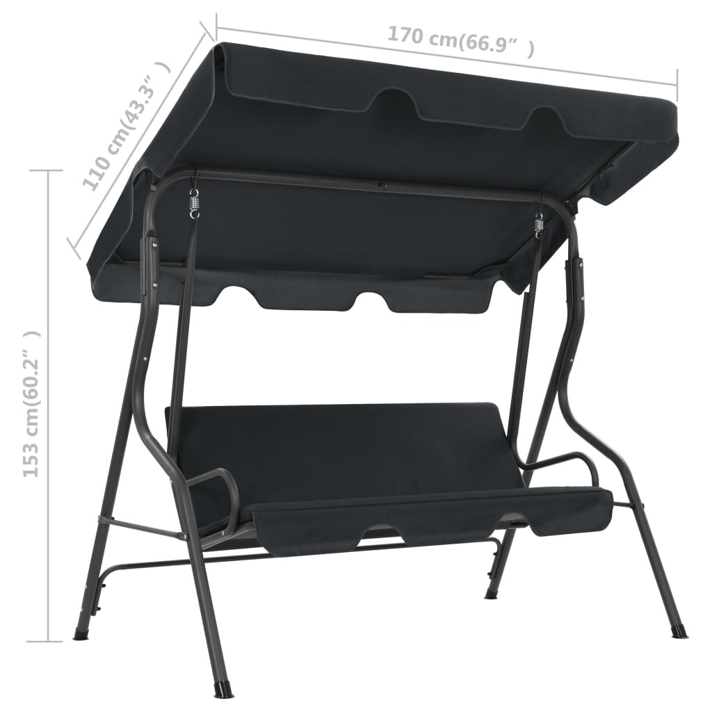 A porszórt acélváz stabillá és tartóssá teszi a kerti hintaágyat. A kényelmes ülés és a háttámla vízálló, könnyen tisztítható poliészterből készült, így ez a tetőponyvás nyugágy tökéletes helyet kínál kikapcsolódásra. Emellett ez a gyönyörű kerti hintaágy nagy méretű tetőponyvájának köszönhetően hűsítő árnyékot biztosít napsütéses időben. A kellemes nyári szellőben biztosan élvezni fogja majd a szék hintázását.