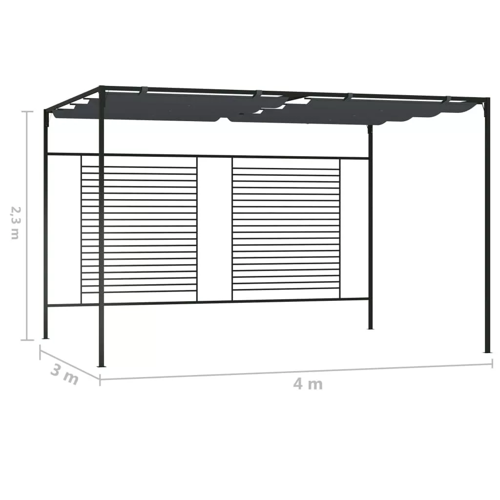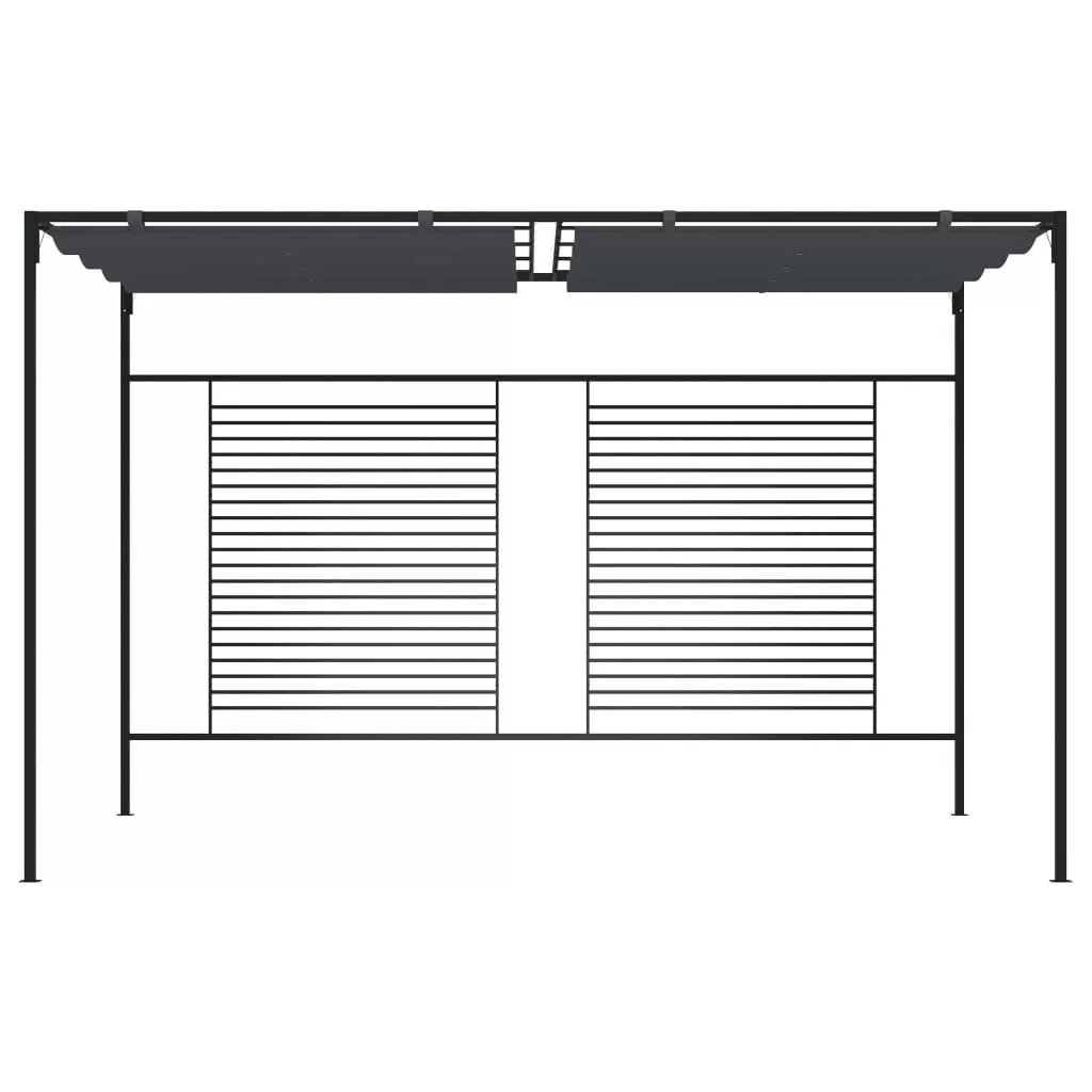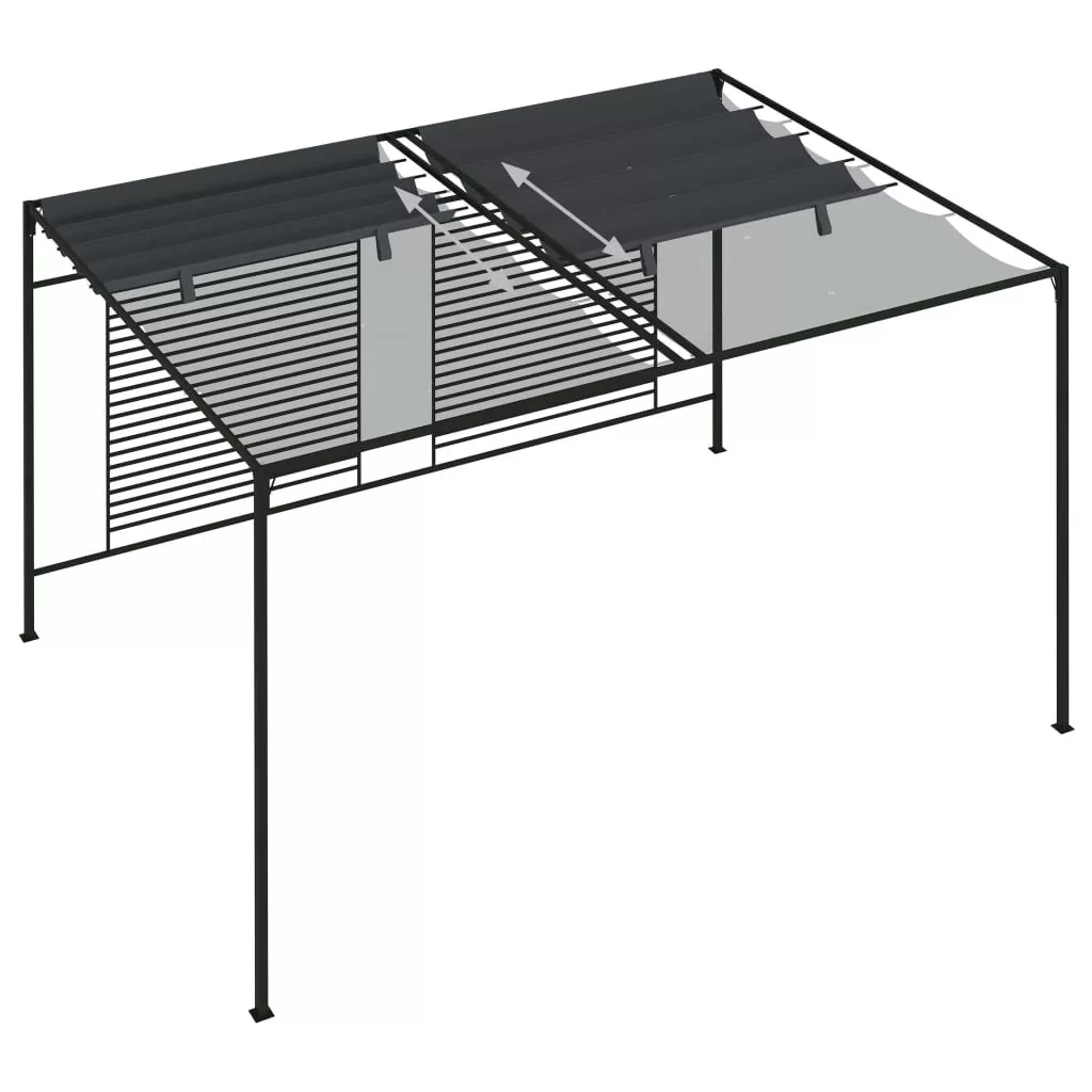 A pavilon tömör vasvázzal rendelkezik, így erős és masszív kültéri használatra. A behúzható tető védelmet nyújt a káros UV-sugarak és az eső ellen, hogy gond nélkül élvezhesse a kültéri eseményeket.