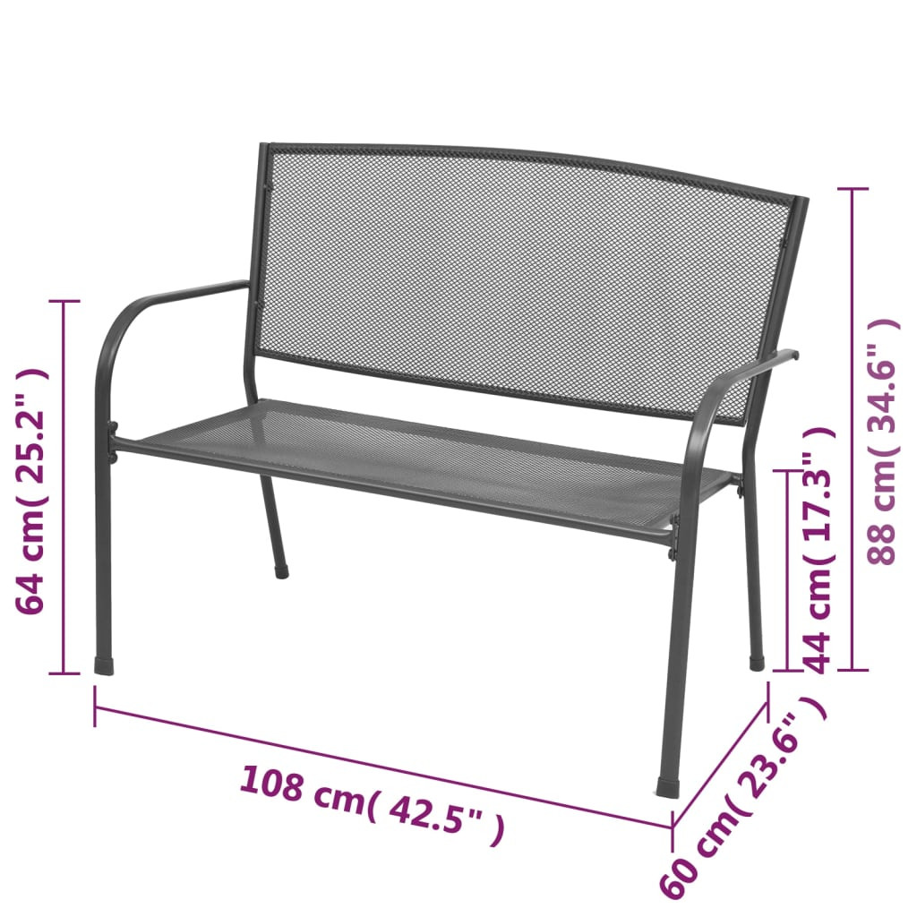 A pad e-bevonatú, porszórt felületkezeléssel ellátott, masszív acélból készült, így időjárásálló és rozsdamentes. Ez a fémbútor kiemelkedően szilárd, strapabíró, ezenfelül pedig a felülkezelésnek köszönhetően könnyen tisztítható és karbantartható. Hálós dizájnjának köszönhetően a pad rendkívül elegáns. Foglaljon helyet ezen a stílusos padon, és élvezze a szabadidejét!