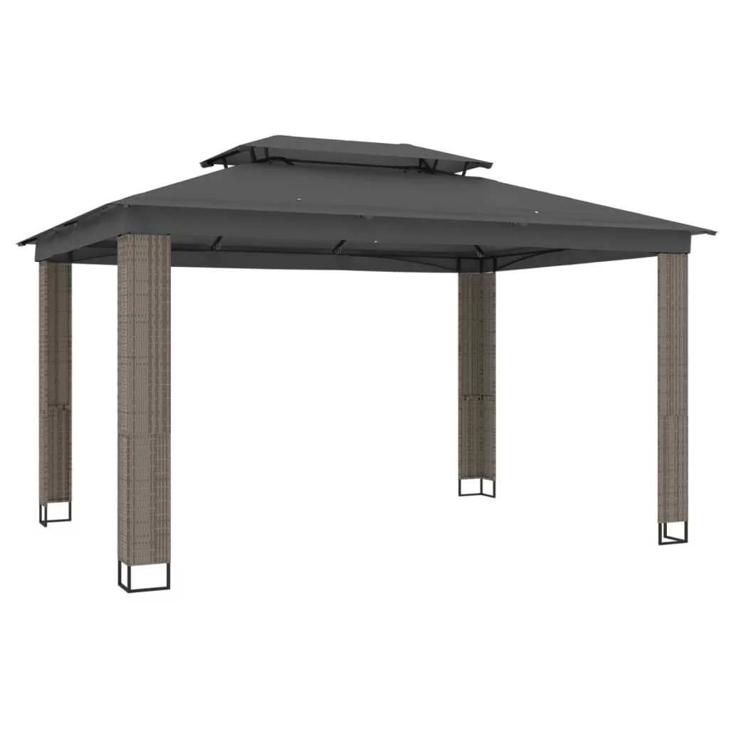 - 2 szintes szellőzős tetőkialakítás: A pavilon elegáns, kétrétegű kialakítású a kiváló szellőzés és stabilitás érdekében, így hűsölhet a napsütéses napokon és ellenáll a szélnek rossz időben.