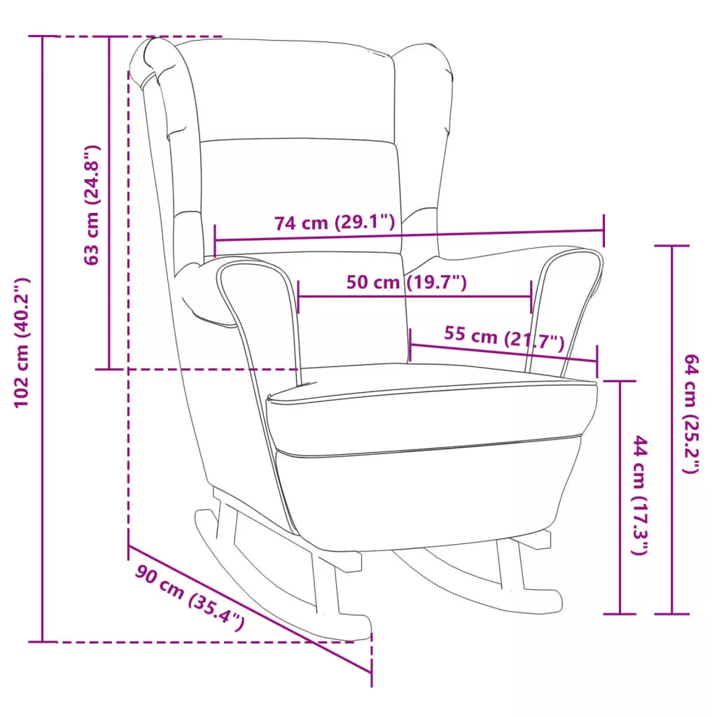 A habszivacs párnázásnak és a puha tapintású szövetkárpitozásnak köszönhetően megfelelő kényelmet biztosít használat közben. Emellett ez a nappaliszék tömör gumifa hintalábakkal rendelkezik, amelyek extra stabilitást biztosítanak.