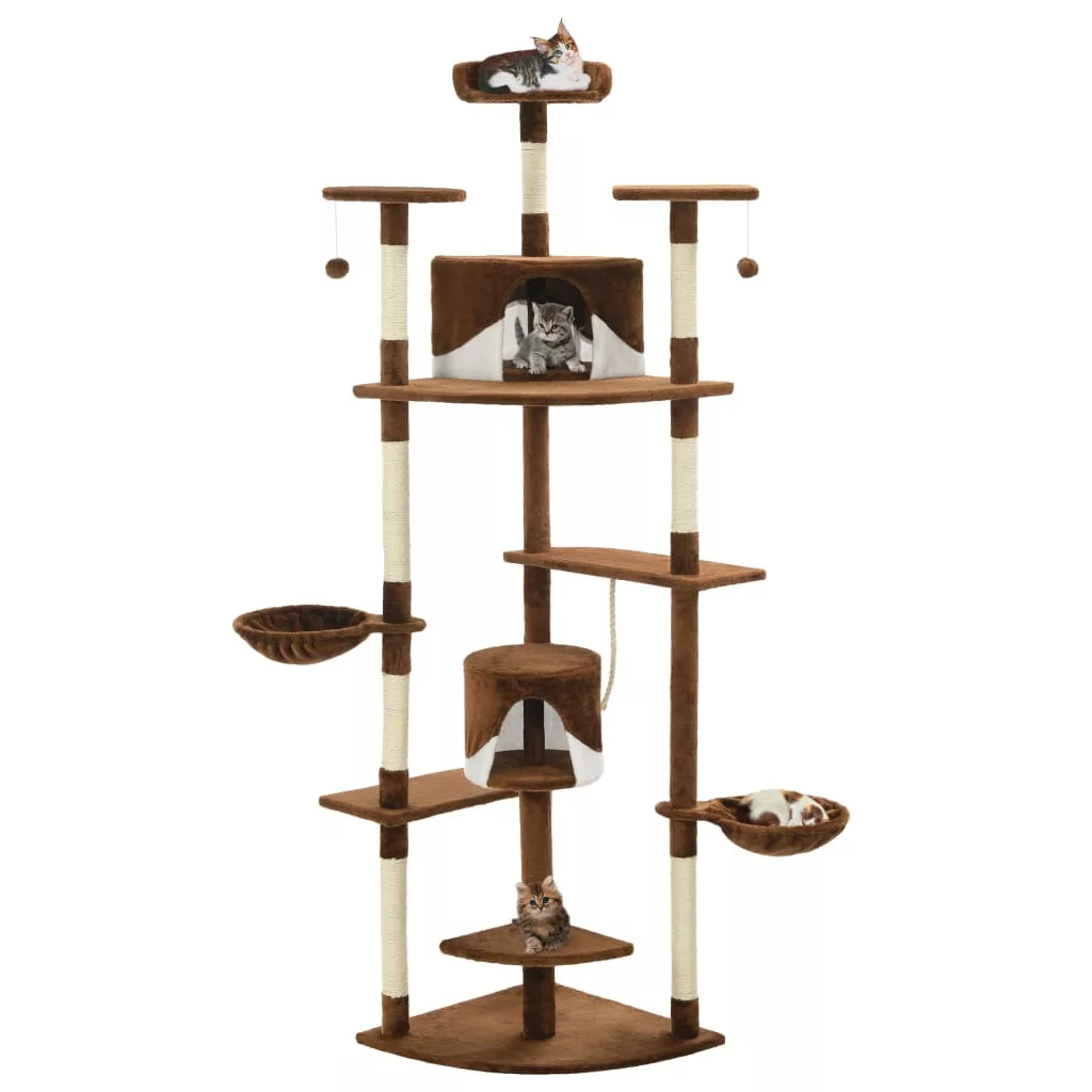 Macska barátai fenhetik a karmukat a szizál kötéllel körbetekert kaparófákon, melyeken kis kedvencei egészséges módon kiélhetik kaparóösztönüket. Élvezni fogják, ahogy kergethetik egymást, miközben fel-le ugrálnak ezen a mókás játszóközponton. A macskabútor tetején lógó játékok találhatóak, melyek lekötik a kíváncsi macskákat. Ha már kijátszották magukat, kis barátai imádni fogják, ahogy elheveredhetnek a felső pihenőkön, ahonnan még jobb kilátás vár rájuk. A komfortos házikókban akár el is bújhatnak, hogy szundítsanak egyet, vagy kiereszthetik a gőzt a kényelmes kosarakban.