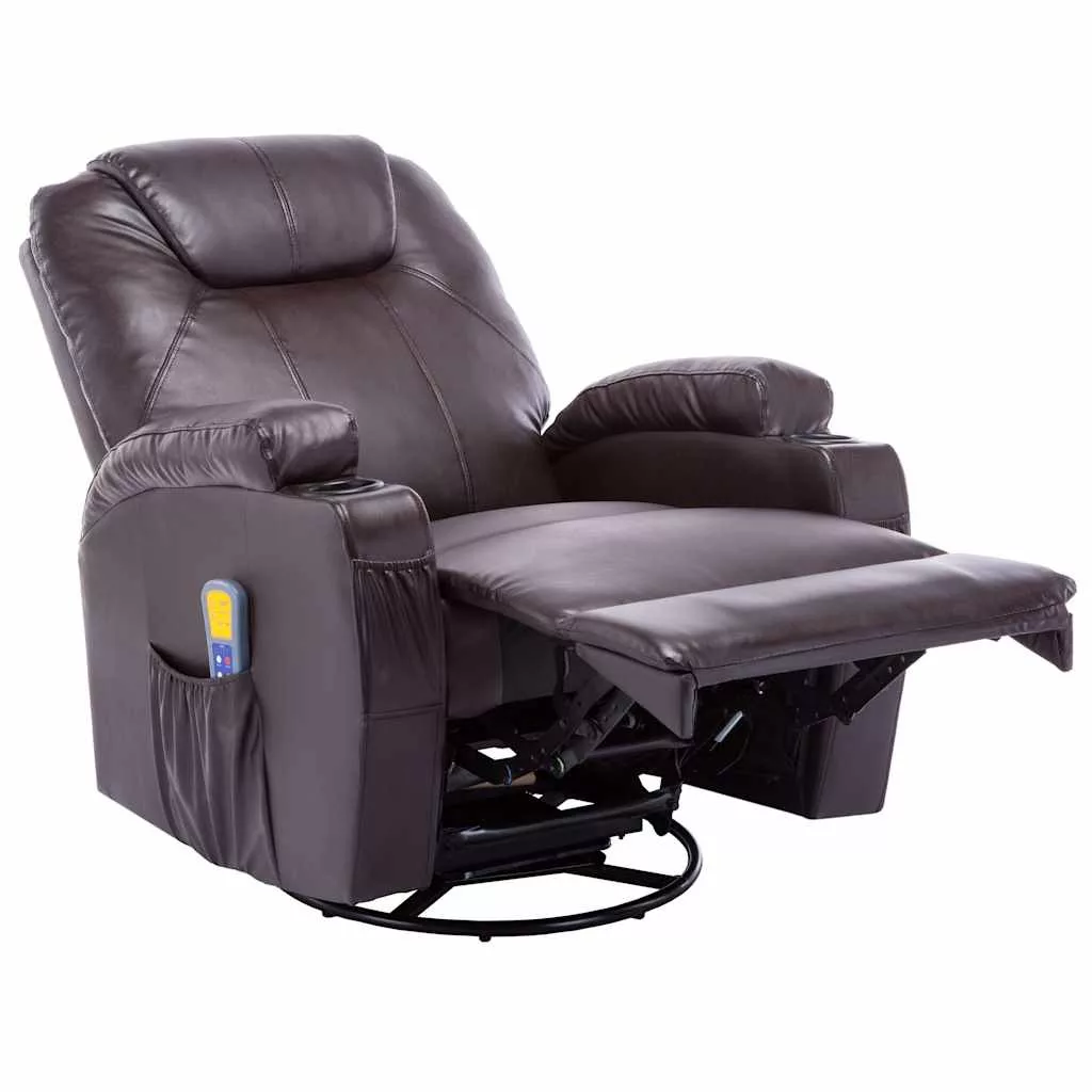 A prémium műbőrrel kárpitozott, vastagon párnázott ülőfelülettel és háttámlával ezt a forgatható fekvőtámlát úgy tervezték, hogy maximális kényelmet nyújtson. A TV-fotel forgatható rendszerrel rendelkezik, amely 360°-os kilátást biztosít. A masszírozó hintafotel 8 masszázsponttal rendelkezik, amelyek megnyugtatják az egész testet. A háttámla és a lábtámasz az Ön igényei szerint különböző szögekbe állítható. A hozzátartozó távirányító a masszázsfotel oldalzsebébe csúsztatható.