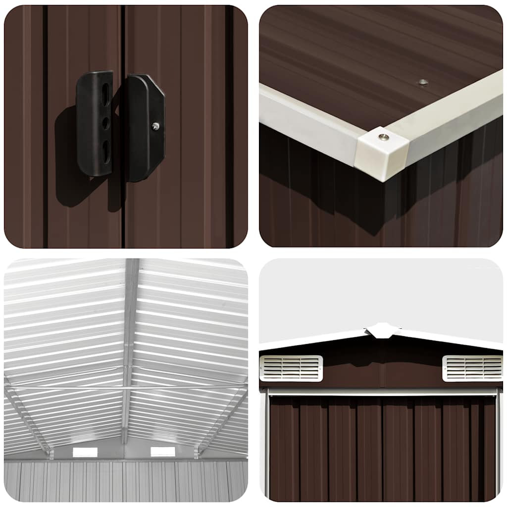 Ez a tárolóház szellőzőnyílásokkal rendelkezik, amelyek kiváló szellőzést biztosítanak. Az elülső dupla tolóajtók könnyű be- és kijutást tesznek lehetővé. A horganyzott acél szerkezetnek köszönhetően a szerszámtároló tartós és erős, nem korrodál, és nem befolyásolják a kedvezőtlen időjárási körülmények.