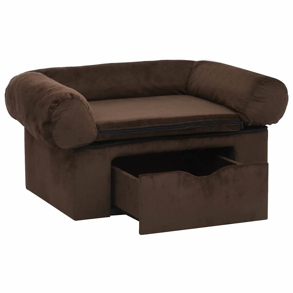 Ez a vastagon párnázott és puha tapintású plüssel borított favázas kisállatkanapé kényelmes helyet biztosít imádott kis kedvencei számára. Az alul található fióknak köszönhetően kutyája holmiját rendszerezetten és elérhető közelségben tarthatja. Emellett a külső test is kiemelkedően masszív, így biztonságos helyet kínál kis kedvencének a pihenéshez. A párnahuzat a frissesség megőrzése érdekében mosható.