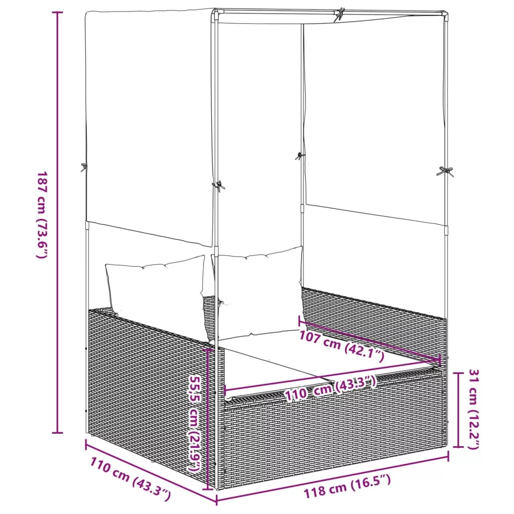 - Mérete tető és függöny nélkül: 115 x 110 x 55,5 cm (Ho x Szé x Ma)