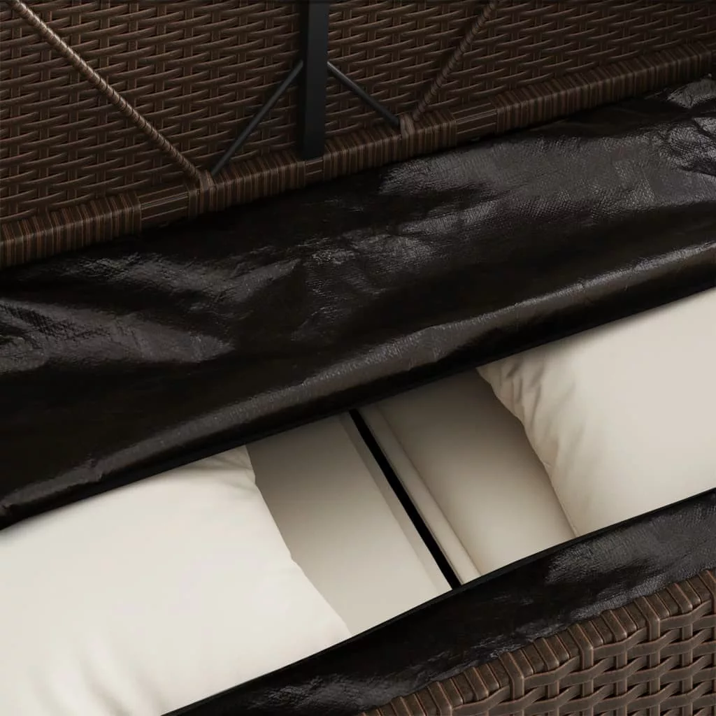 - Tárolási funkció vízálló zsákkal: A kerti bútor tárolóhellyel rendelkezik az ülés alatt, amely egy vízálló zsákkal van kiegészítve a párnák, játékok és egyéb tárgyak tárolására. A belső zsák tépőzáras rögzítőkkel biztonságosan a kültéri bútorhoz rögzíthető a nagyobb stabilitás érdekében.