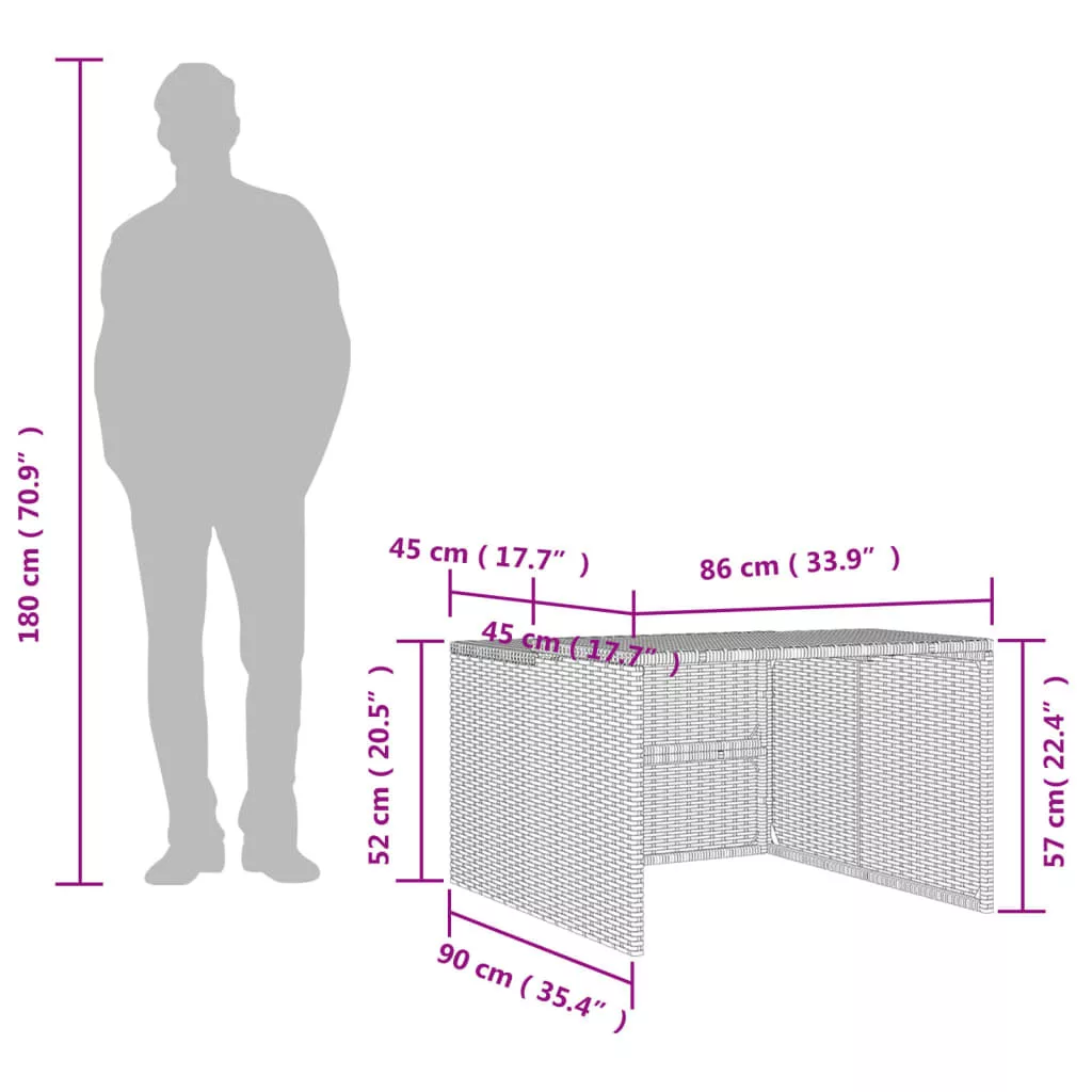 - Anyaga: polyrattan, porszórt acél, polipropilén lemez