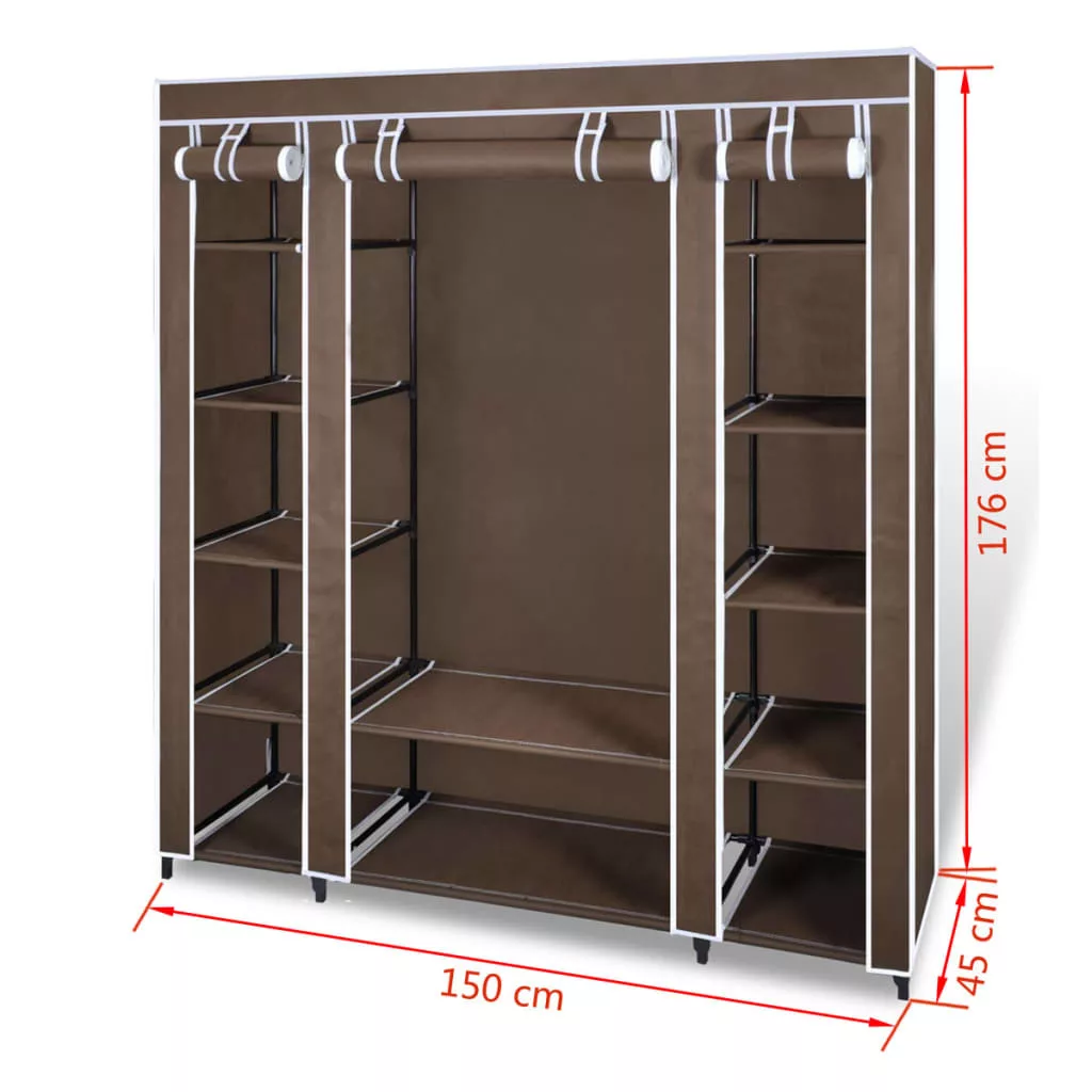 vidaXL barna szövet ruhásszekrény tárolórekeszekkel 45x150x176 cm