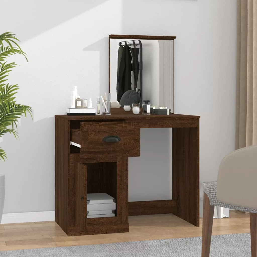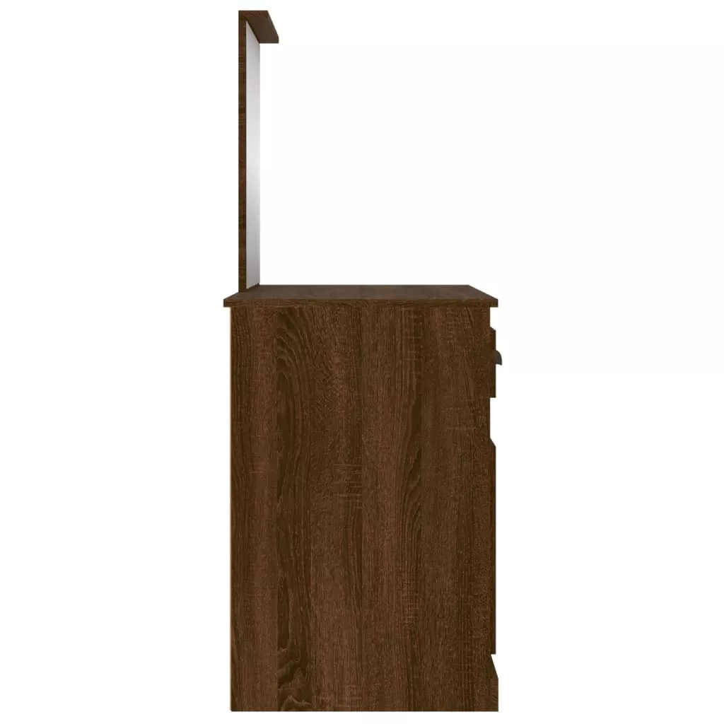 vidaXL barna tölgy színű szerelt fa tükrös pipereasztal 90x50x132,5 cm