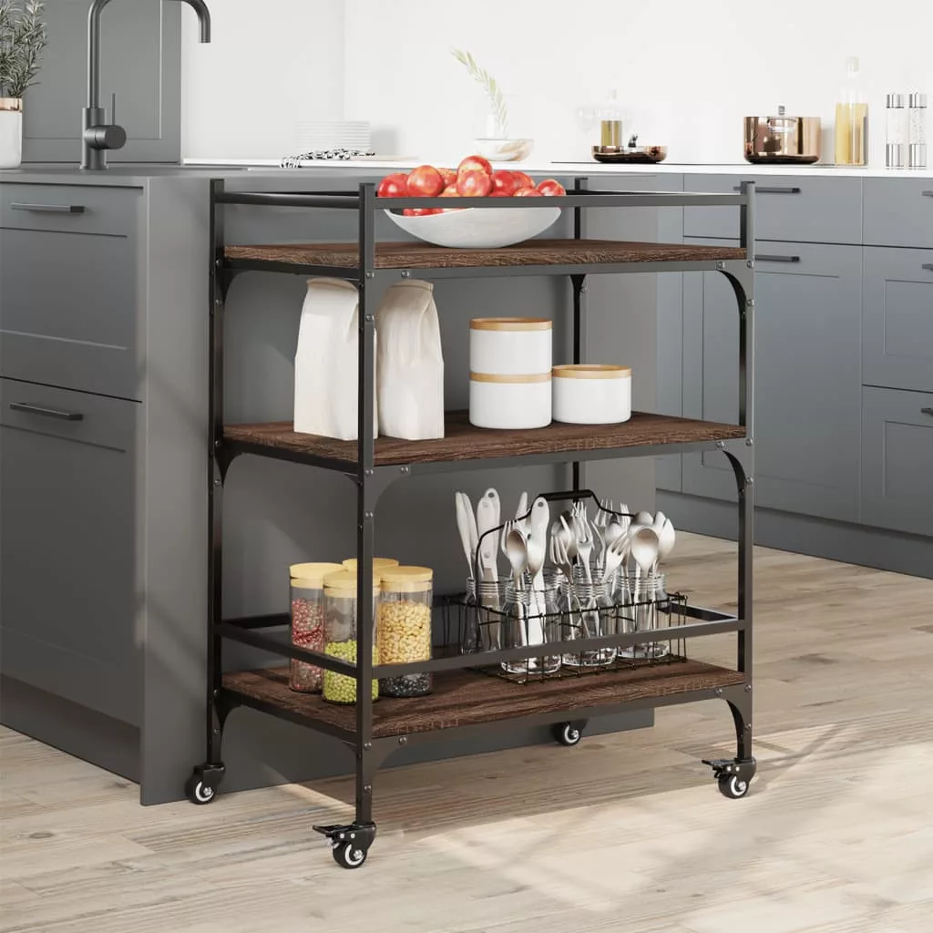 vidaXL barna tölgyszínű szerelt fa konyhai kocsi 65 x 40 x 86,5 cm