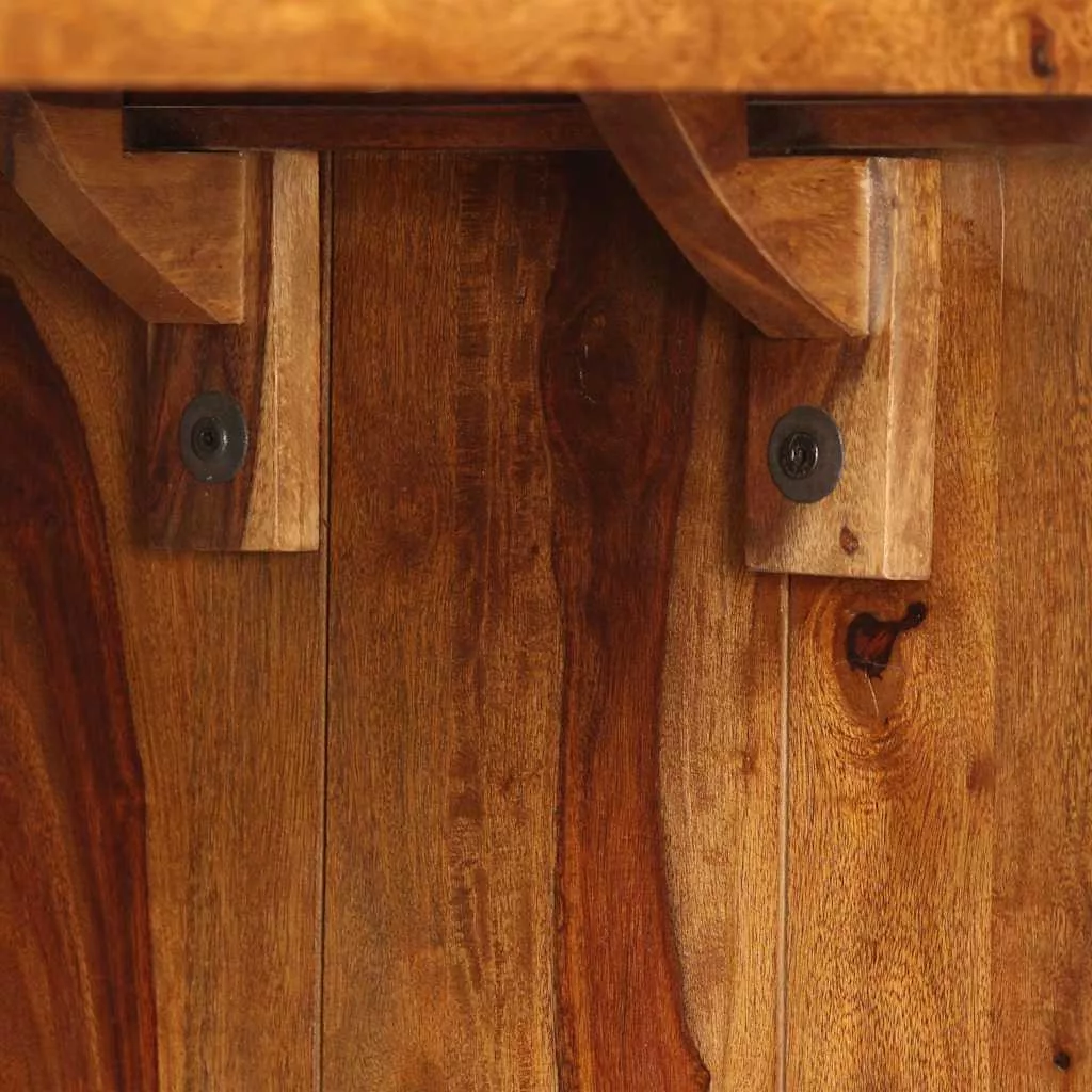 Ez a tálaló/íróasztal tömör akácfából készült. Az akácia fa, másnéven a rózsafa vagy paliszander egy trópusi keményfa, mely gyönyörű erezetéről ismert. Teljes egészében kézzel készült, és a gyönyörű erezetnek köszönhetően minden bútordarab egyéni megjelenéssel bír, és kis mértékben eltér társaitól. A masszív fa keret hozzájárul a tálaló stabilitásához. Nagyon könnyen összeszerelhető.