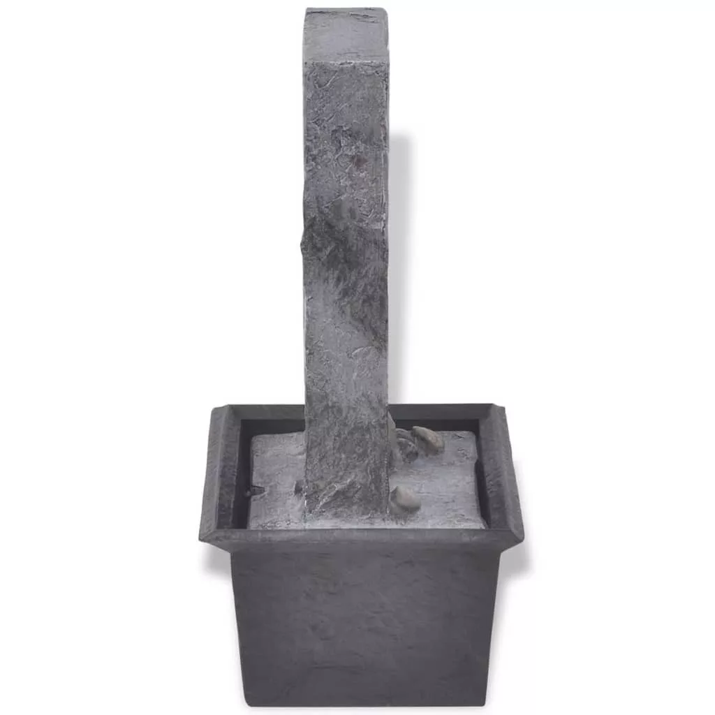 Ez a csobogós szökőkút bármely berendezés hozzáadása lehet. LED világítása, de főleg este, rendkívüli fényeffektusokkal látja el. Gyantázott poliészterből készült és UV álló, mely azt jelenti, hogy megőrzi jellegét és színét akkor is, mikor a napra tevődik ki. Több vízsugár csordogál lefele, mely lazító hangja egy nyugtató és meditatív környezetet hoz létre. A tartalmazott, kiváló minőségű pumpa biztosítja a megbízható működtetést.