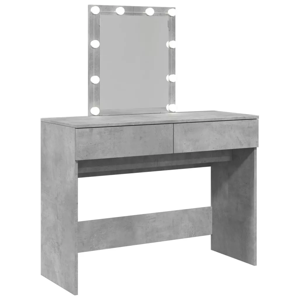 vidaXL betonszürke fésülködőasztal LED-del 100 x 40 x 130 cm