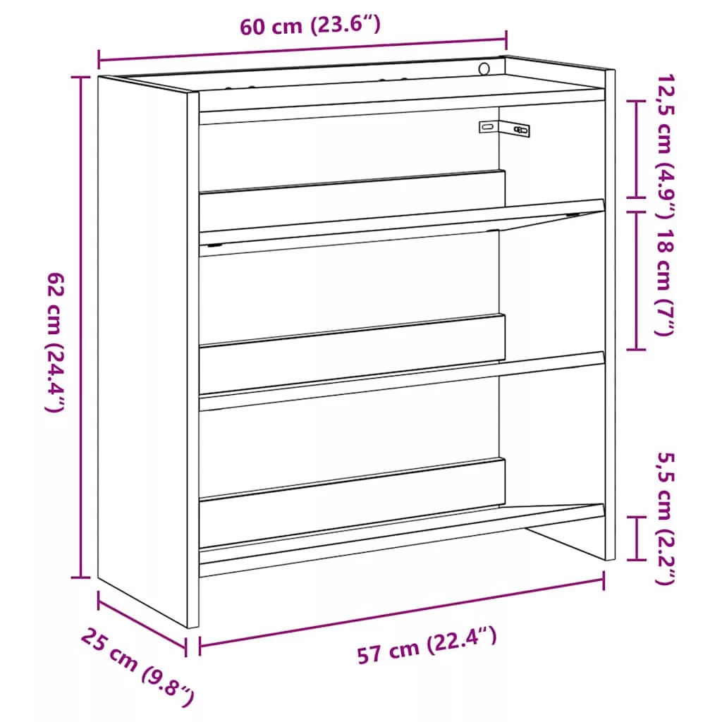 - Bőséges tárolóhely: A cipőtartó polcai elegendő helyet biztosítanak a cipők tárolásához. Ezzel a praktikus cipőtárolóval nem fog többé bosszankodni azon, hogy a lábbelik elfoglalják az egész padlót.