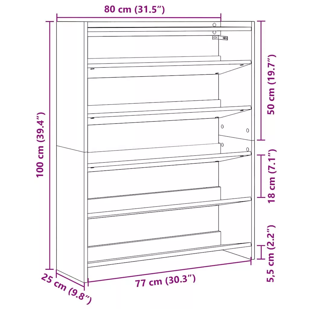 - Bőséges tárolóhely: A cipőtartó polcai elegendő helyet biztosítanak a cipők tárolásához. Ezzel a praktikus cipőtárolóval nem fog többé bosszankodni azon, hogy a lábbelik elfoglalják az egész padlót.