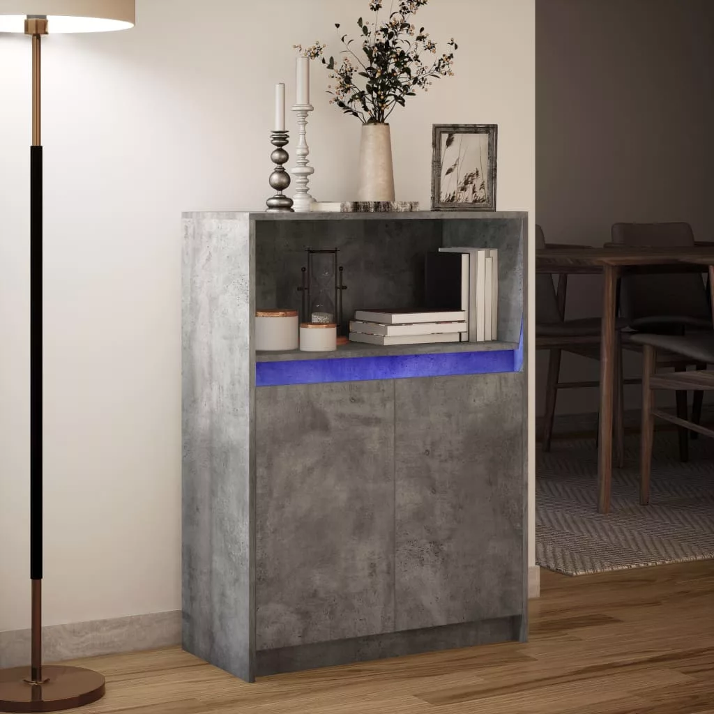 Díszítse fel szobáját ezzel a modern, LED-es lámpákkal felszerelt tálalószekrénnyel, mely könnyedén beleolvad otthona bármely stílusához.