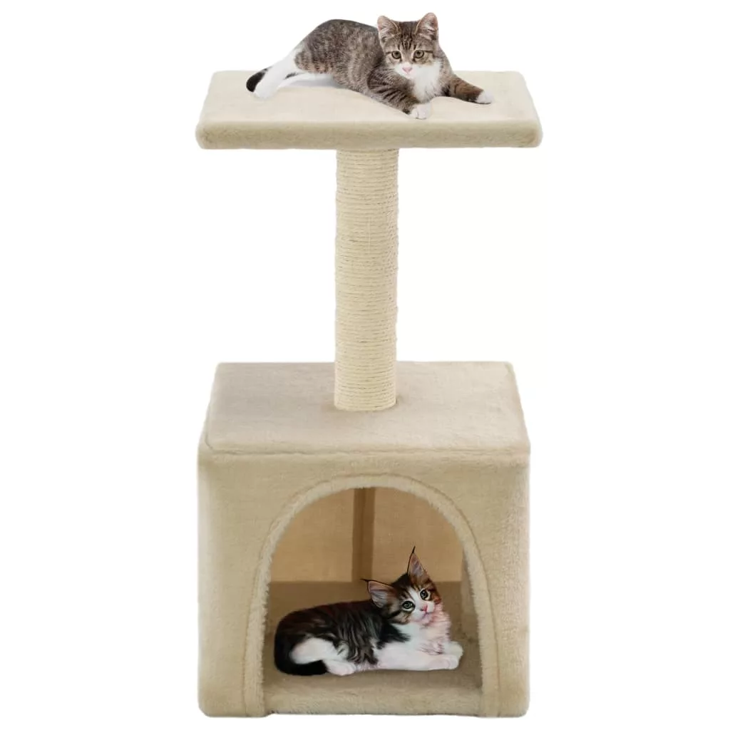 A plüss szőnyeges felület nagyon kényelmes, a kaparófa pedig szizálkötélbe van csomagolva. A macskabútoron egy kényelmes házikó és egy emelvény is található, amelyek elszórakoztatják majd kis barátait. A kaparófa alapja erős és stabil. Kiscicák számára alkalmas.