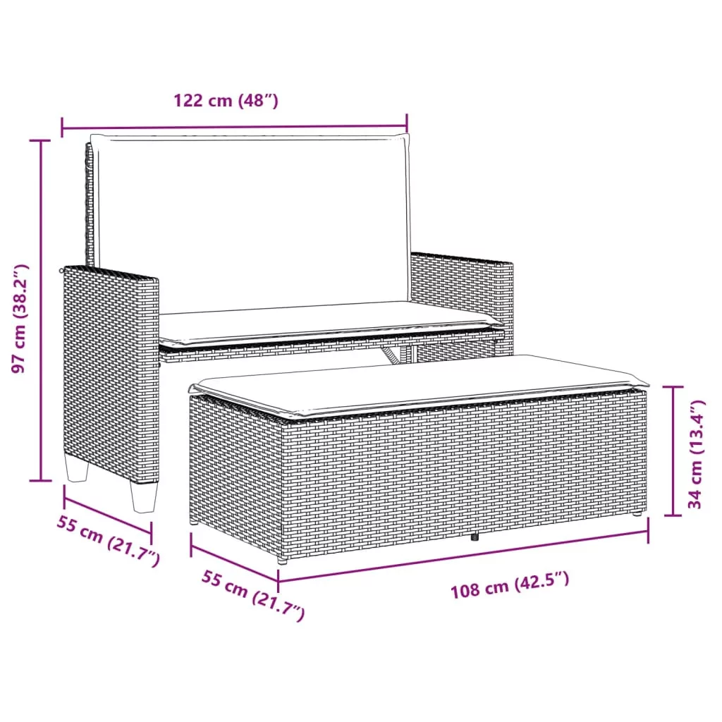 Ez a 2 az 1-ben kerti pad, amely kültéri ülőgarnitúraként és kanapéként is szolgál, praktikus és szemet gyönyörködtető kiegészítője lesz kültéri életterének.