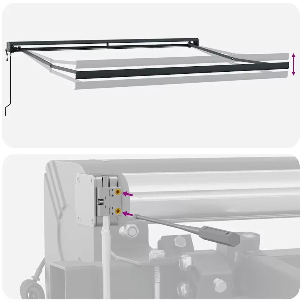 - Könnyen kezelhető: A szög és a magasság állítható, hogy megfeleljen az Ön különböző igényeinek. A napellenző a hosszú hajtókarral zökkenőmentesen nyitható és visszahúzható.