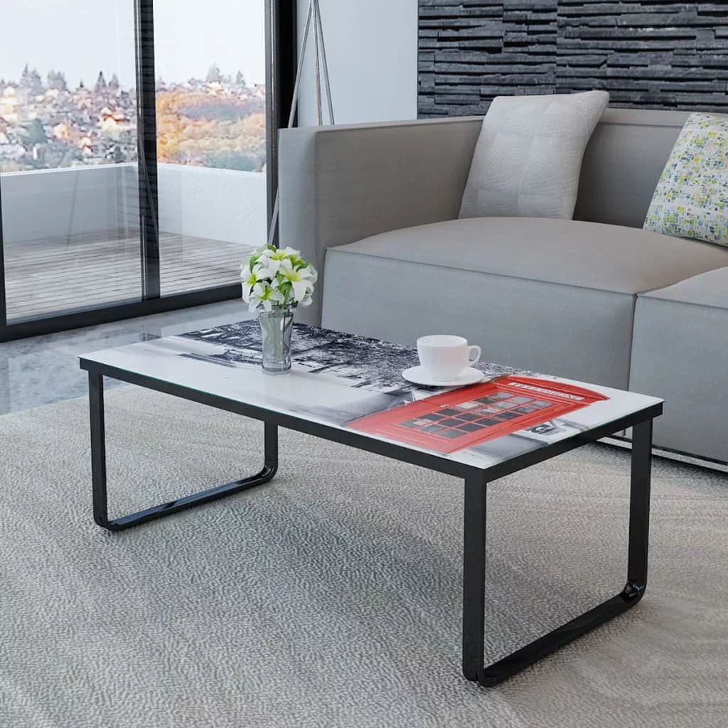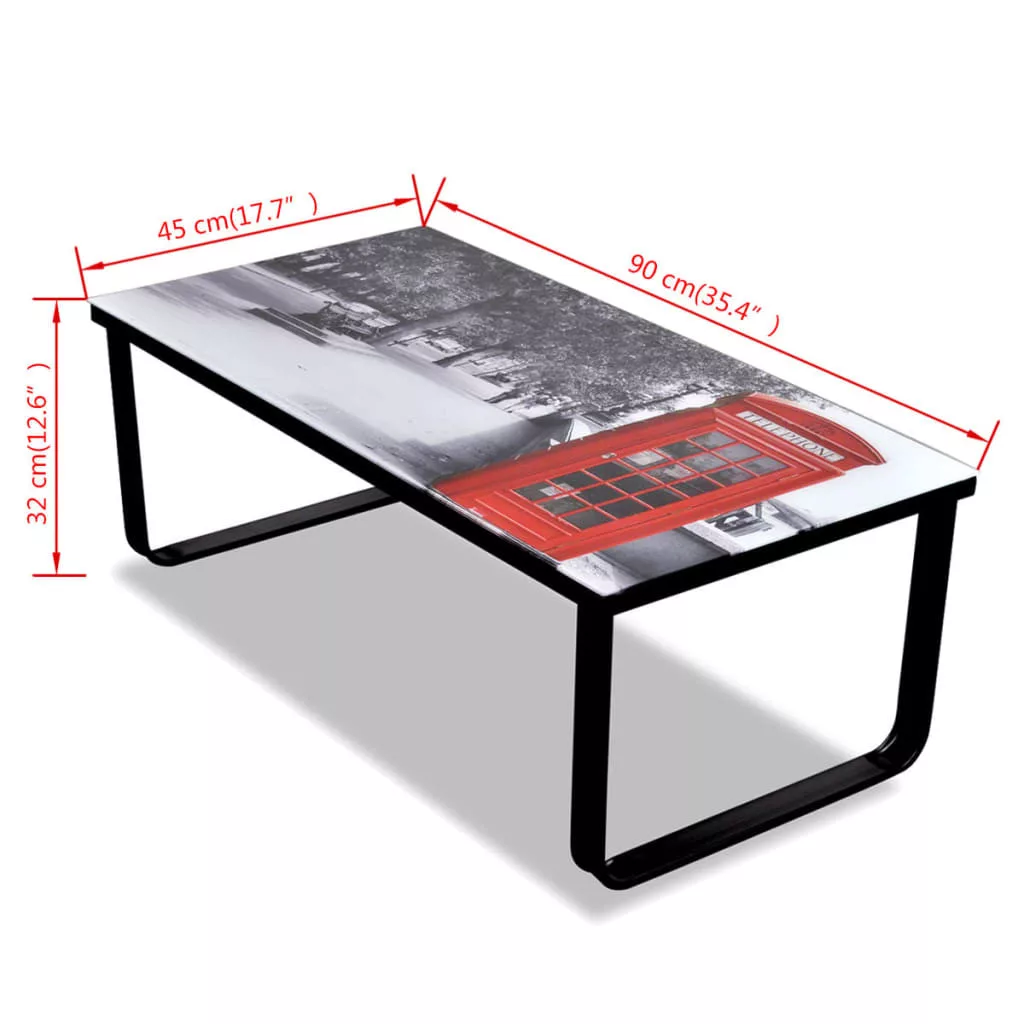 Ez a telefonfülkés mintával ellátott négyszögletes dohányzóasztal modern és elegáns megjelenéssel bír, így tökéletes kiegészítője lesz otthonának. Dohányzóasztalként vagy kisasztalként is használható.
