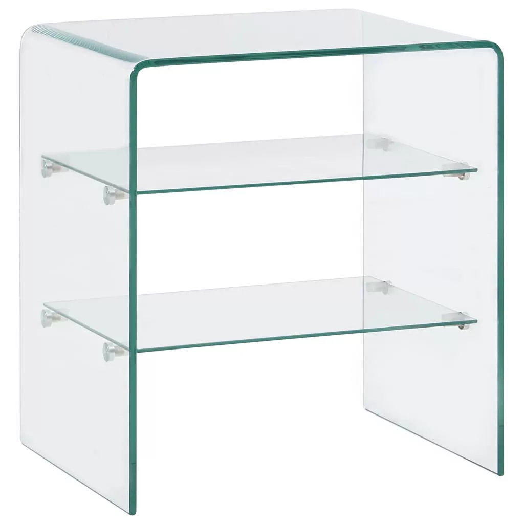 A kanapéasztal edzett biztonsági üvegből készült, ami biztonságosabb és erősebb, mint a normál üveg, ezért az asztal erős és tartós. A két polcnak köszönhetően praktikus kisasztalunk tökéletes könyvek, folyóiratok és egyéb kisebb tárgyak kézközelben való tárolására. Az üveg dohányzóasztal nedves ruhával könnyen tisztítható.