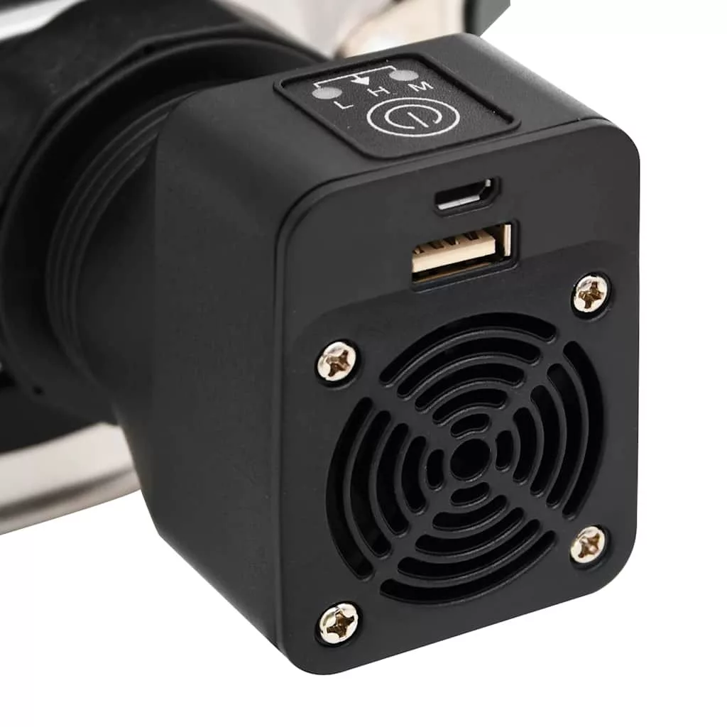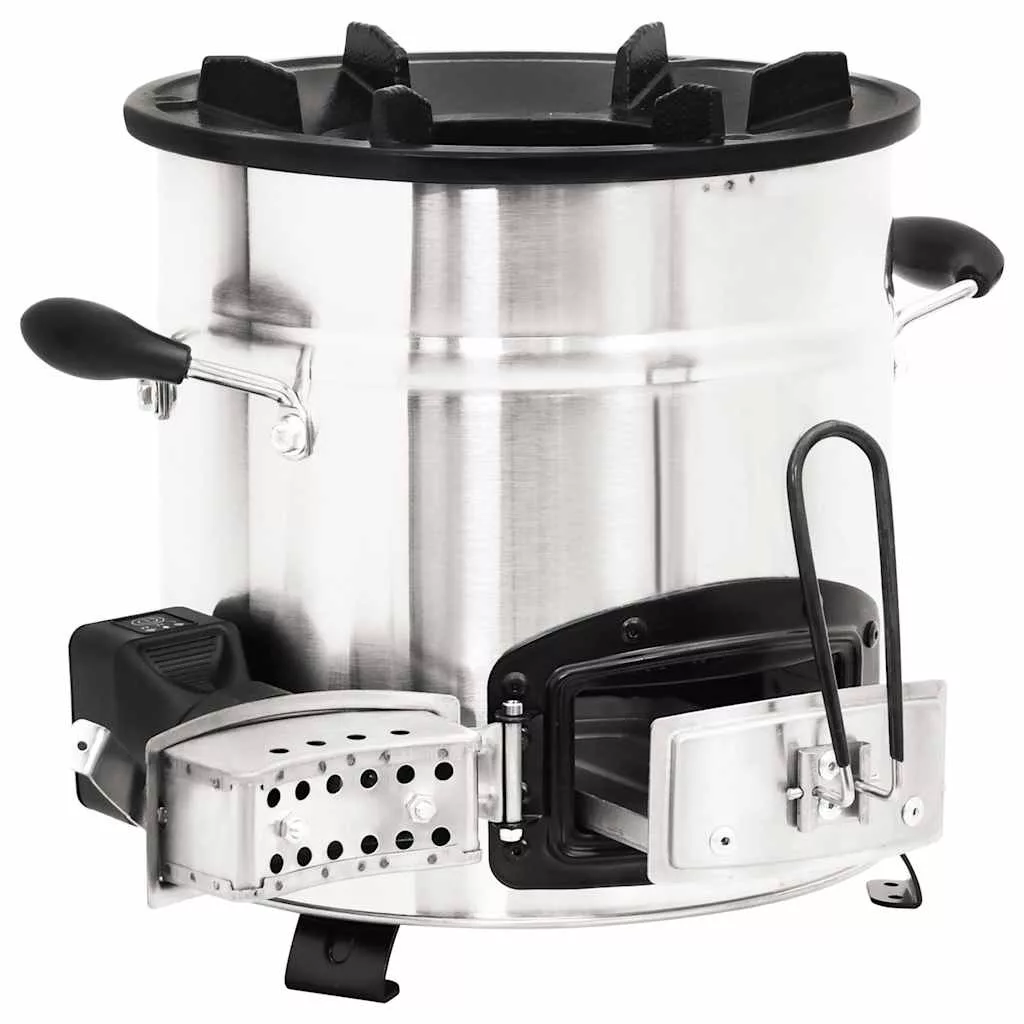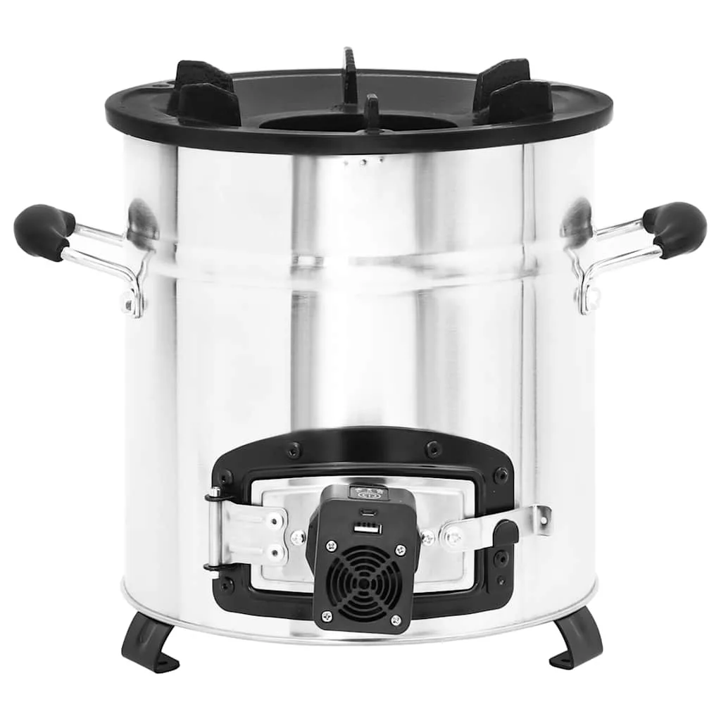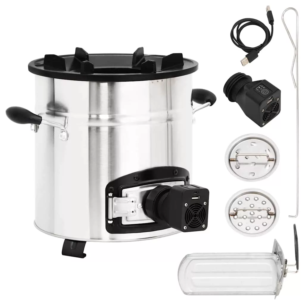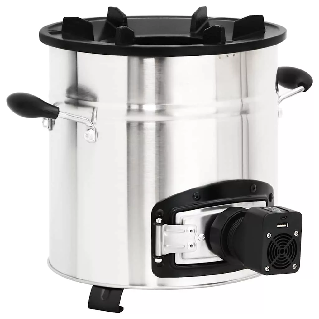 Ez az USB-s légfúvóval ellátott fatüzelésű kempingtűzhely főzőeszközként szolgál kültéri tevékenységekhez, hidegebb időben pedig extra meleget és kellemes hangulatot teremt.