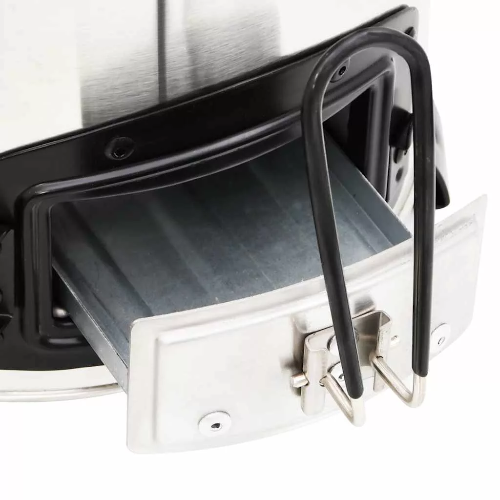 - Ajtós kialakítás: A kempingtűzhely alul ajtóval rendelkezik, ami a légfúvó felszerelésére szolgál. Emellett a hamutálca segítségével eltávolíthatja a lehűlt hamut a nyílásból.