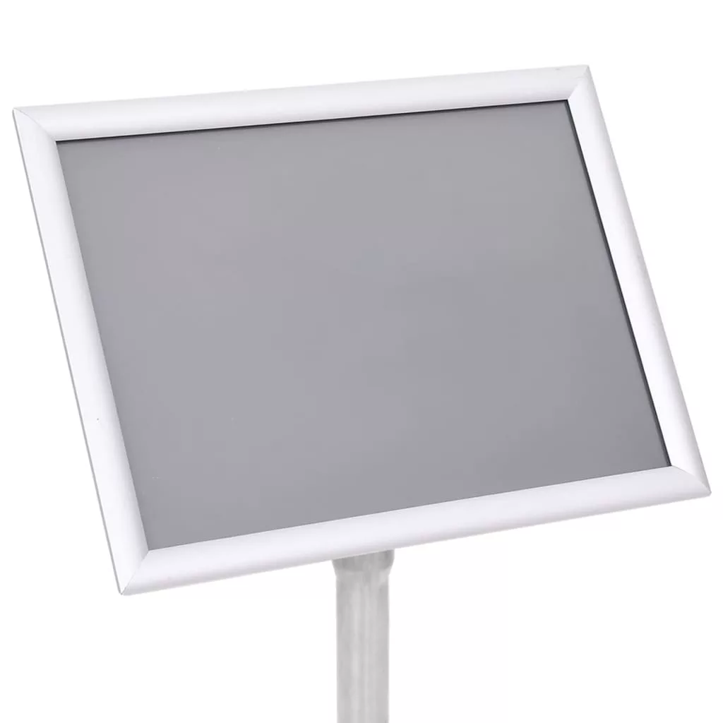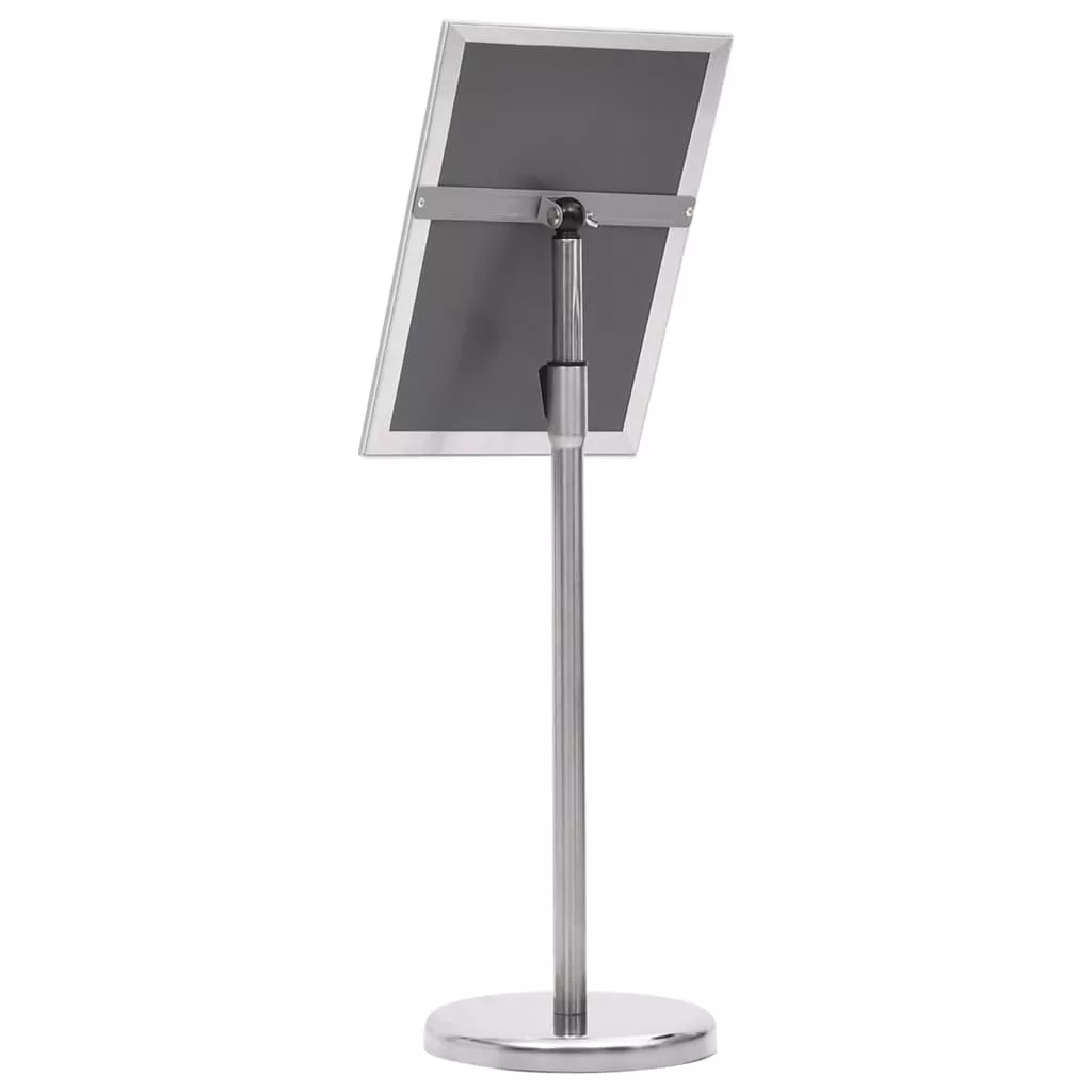 Ez a poszterállvány teljesen állítható, hogy megfeleljen a különböző igényeknek. A tartós és könnyű alumíniumötvözetből készült állvány egy standard A4-es grafikát jelenít meg. Nagy rugalmasságú panelje bármilyen szögben elforgatható. Az átlátszó PVC fólia megvédi a panelt a portól és az ujjlenyomatoktól, és tisztán tartja a megjelenítendő posztereket. Az összepattintós rendszernek köszönhetően az állvány gyorsan felállítható. Emellett kis méretével kevés helyet foglal, és könnyen szállítható.