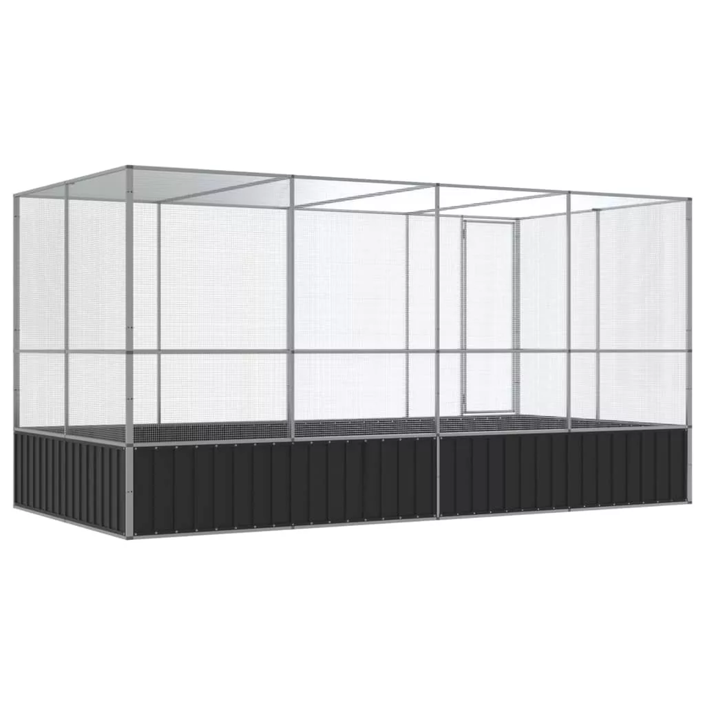 - Masszív váz: Az acél kivételesen kemény és erős anyag. Masszív és stabil. A horganyzás jobb védelmet nyújt a korrózió ellen, és hasznos a szabadban és zord környezetben használt termékekhez. A masszív horganyzott acél szerkezetnek köszönhetően ez a madárház tartós.