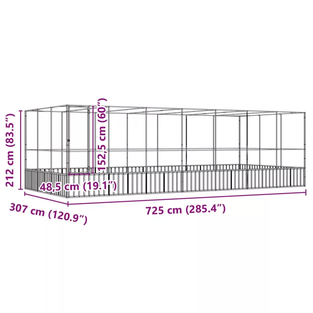 - Robusztus váz: Az acél rendkívül kemény és erős anyag. Erős szerkezetet és stabilitást biztosít. A horgonyzás jobb védelmet nyújt a korrózió ellen, és hasznos a szabadban és zord környezetben használt termékeknél. A masszív horganyzott acélszerkezetnek köszönhetően ez a madárház tartósra készült.