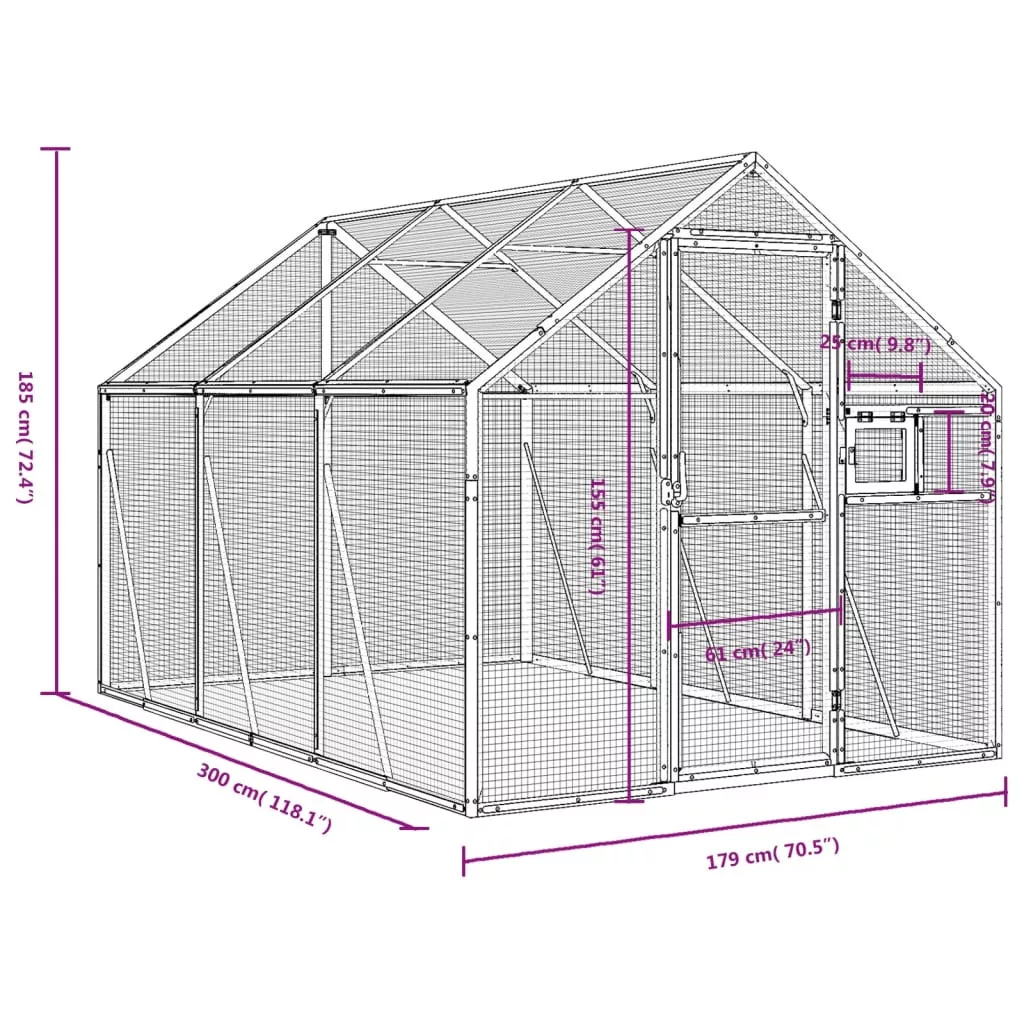- Tartós anyag: Az alumínium fém könnyű és erős. Önvédő oxidréteggel ellenáll a korróziónak. A robusztus alumínium konstrukciónak köszönhetően ez a madárház tartósra készült.