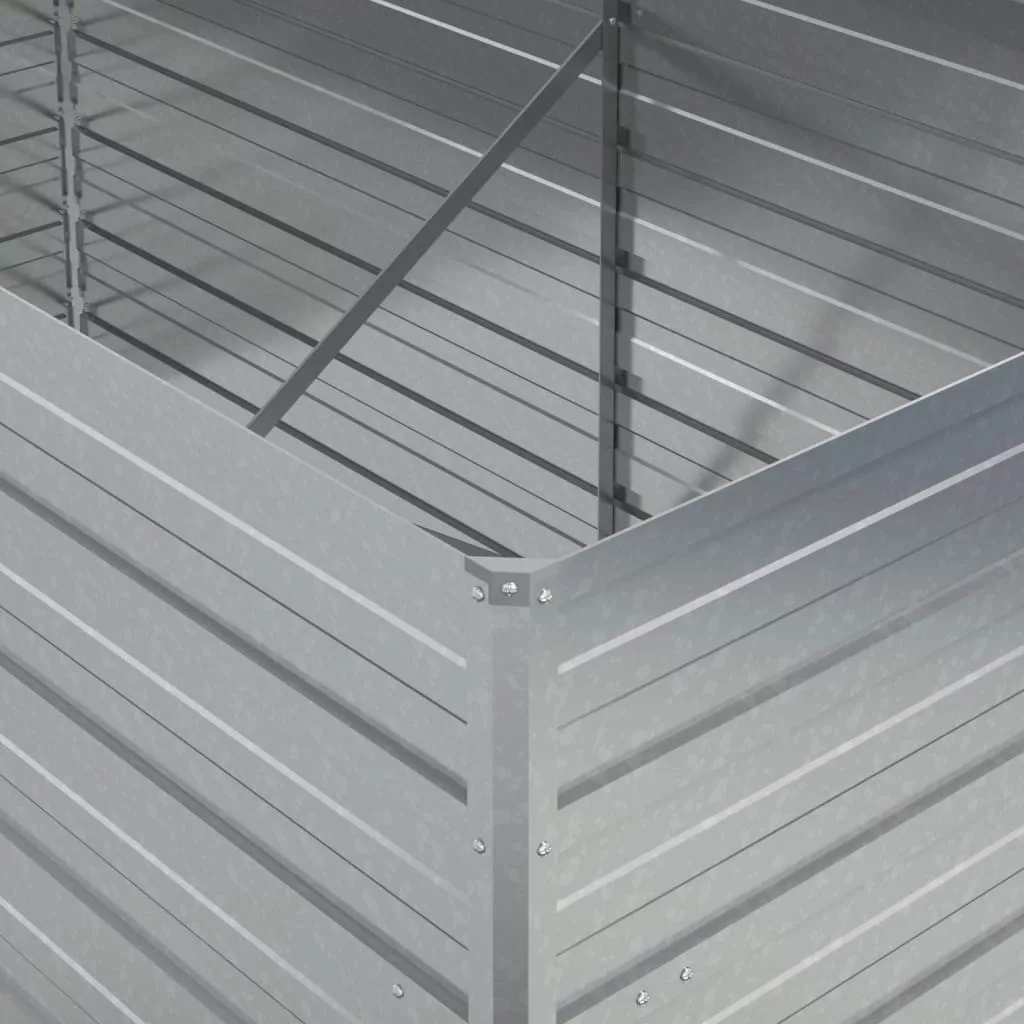- Robusztus és stabil: Nagy teherbírású horganyzott acélból készült, így a láda időjárásálló, ezért nagyon praktikus kültéri használatra.